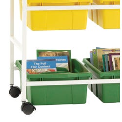 With three rows of deep tub storage there are endless organization possibilities within the classroom or library. These carts are the ideal height for students and teachers to easily view and take books out of..