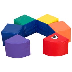 Climb up on the soft and sturdy inchworm, a friendly worm that encourages gross motor skills in young ones! This inchworm slides caterpillar-like across the floor and is hinged together along the floor line. Flip on its side and wrap it around small bodies for support. Lightweight design creates a climber that moves with your early learning care space. Measures 48 L x 8 W x 8 H inches.Features