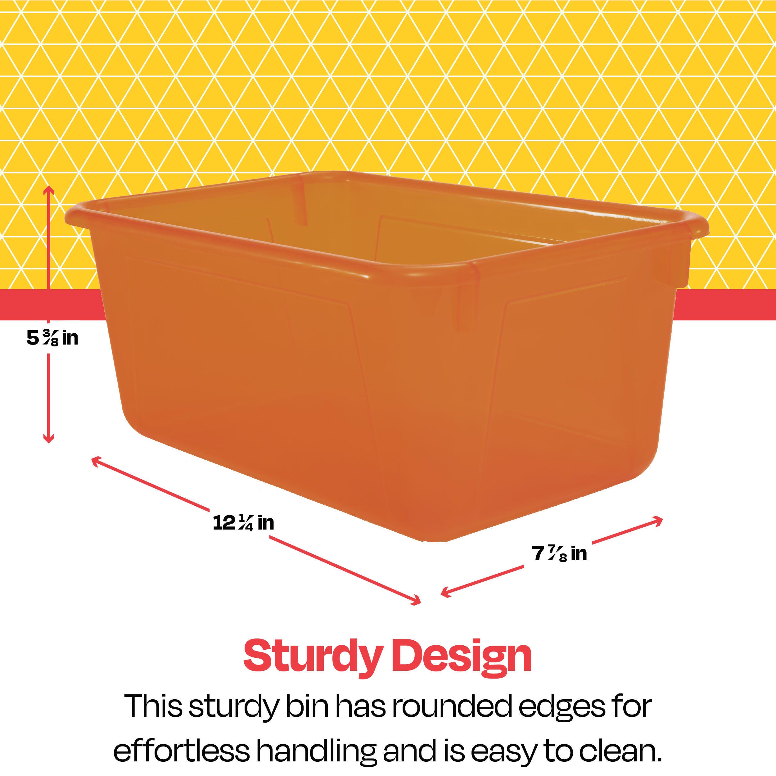 School Smart Translucent Storage Bin, 7-7/8 x 12-1/4 x 5-3/8 Inches, Orange