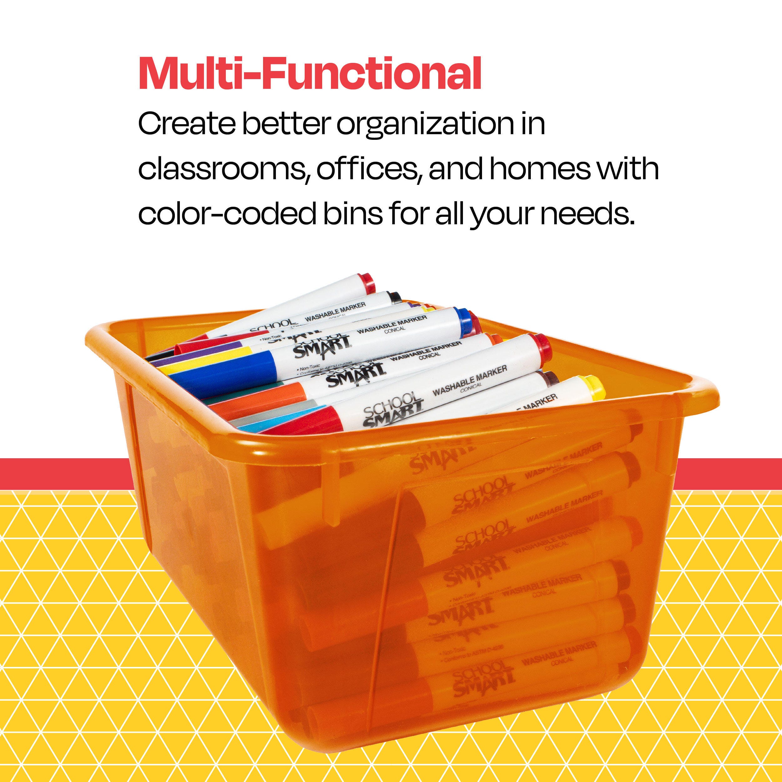 Organize with School Smart; this translucent plastic storage bin is tinted in a bright color but is clear enough to easily identify contents from afar. Our plastic cubby bins are easy to use and hold. Use them on their own or with cubby shelves. Whether you’re teaching STEM or STEAM, the bright colors help with classroom organization, and your imagination sets the limit. Use the plastic storage containers for elementary schools, kindergarten, preschool, childcare centers, and playrooms. The storage box works well as an arts and crafts container, toy organizer, book holder, and more.