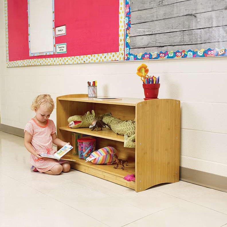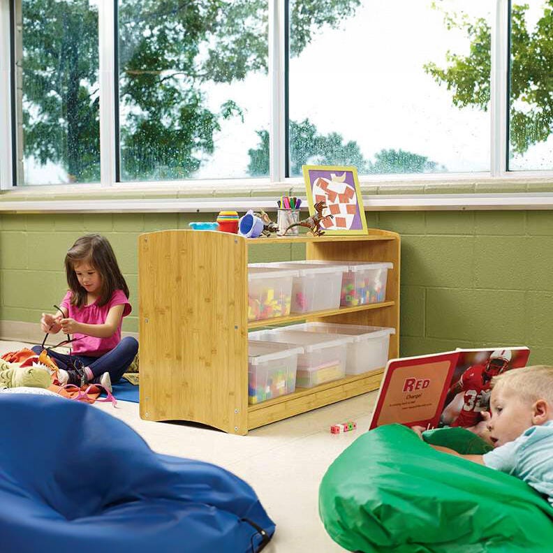 The Bamboo Book Shelf has a natural aesthetic suited for neutral and early childhood environments. With three shelves for storage and optional six-tub configurations, this Bamboo Book Shelf is at the ideal height for ECE students and educators to access learning materials, books and other supplies. Bamboo is a renewable resource that grows quickly and sequesters carbon, unlike steel which produces carbon. For every bamboo product purchased, Copernicus will make a donation to conserve natural panda habitat through the World Wildlife Fund.Features