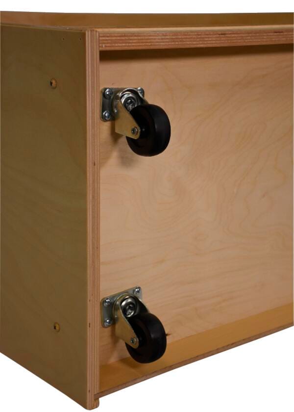 The Childcraft® Mobile Cubby Storage Unit, with a 30 flat-tray capacity, provides ample space for organizing supplies, mail, and more in classrooms, childcare centers, and homes. Featuring cubby openings, this bookcase accommodates 30 storage trays measuring up to 10-1/2 W x 13 D x 2-7/8 H inches (sold separately) to keep items neatly contained. Removable shelves and dividers allow for customizable storage options and easy cleaning, while the heavy-duty caster wheels provide effortless mobility around the room. Crafted from durable birch plywood with a beautiful natural veneer finish, this cubby cabinet is built to last. Measures 58-3/4 W x 14-1/4 D x 30 H inches. Comes fully assembled.