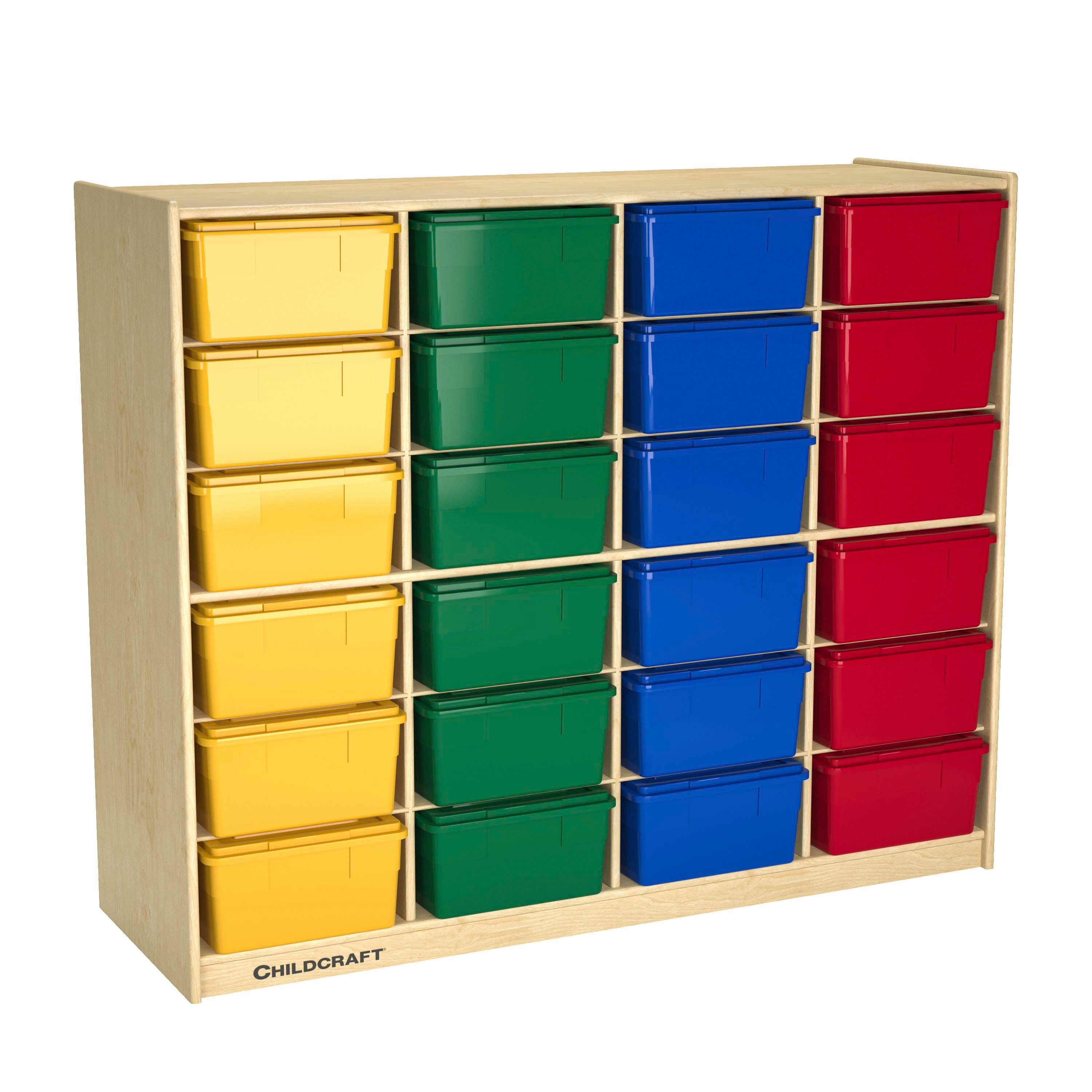 Childcraft Mobile Cubby Storage Unit, 24 Assorted Color Trays, 50 x 16-3/4 x 42 Inches