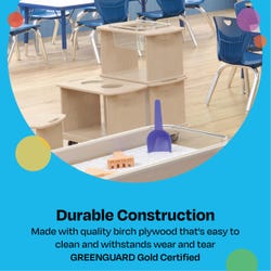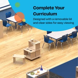 Childcraft® Stacking Habitat and Terrarium Science Module Sensory Table includes a removable lid and clear sides for easy viewing. Use the wooden sensory table for hands-on learning and ecosystem exploration. The portable science cart features a sensory experience for young children, and has smooth handles for easy carrying and feet that nest for stacking with our other small tables. The interactive activity center is great for building fine motor skills and developing sensory stimulation. Crafted for long-lasting use, this science station is made of durable birch plywood that’s easy to wipe clean. Comes fully assembled. This sensory table measures 19-1/2 W x 10 D x 10-1/4 H inches.Features