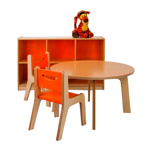 Our 18-inch height Maple Top Round Table is constructed in beautiful 1-inch thick birch plywood for superior strength and durability in a natural UV finish. The table surface is finished in the same high-pressure laminate (HPL) used on kitchen counters, making these tables extremely scratch resistant and able to withstand rigorous use by children. The table is available in heights of 18, 20, and 22 inches.Features