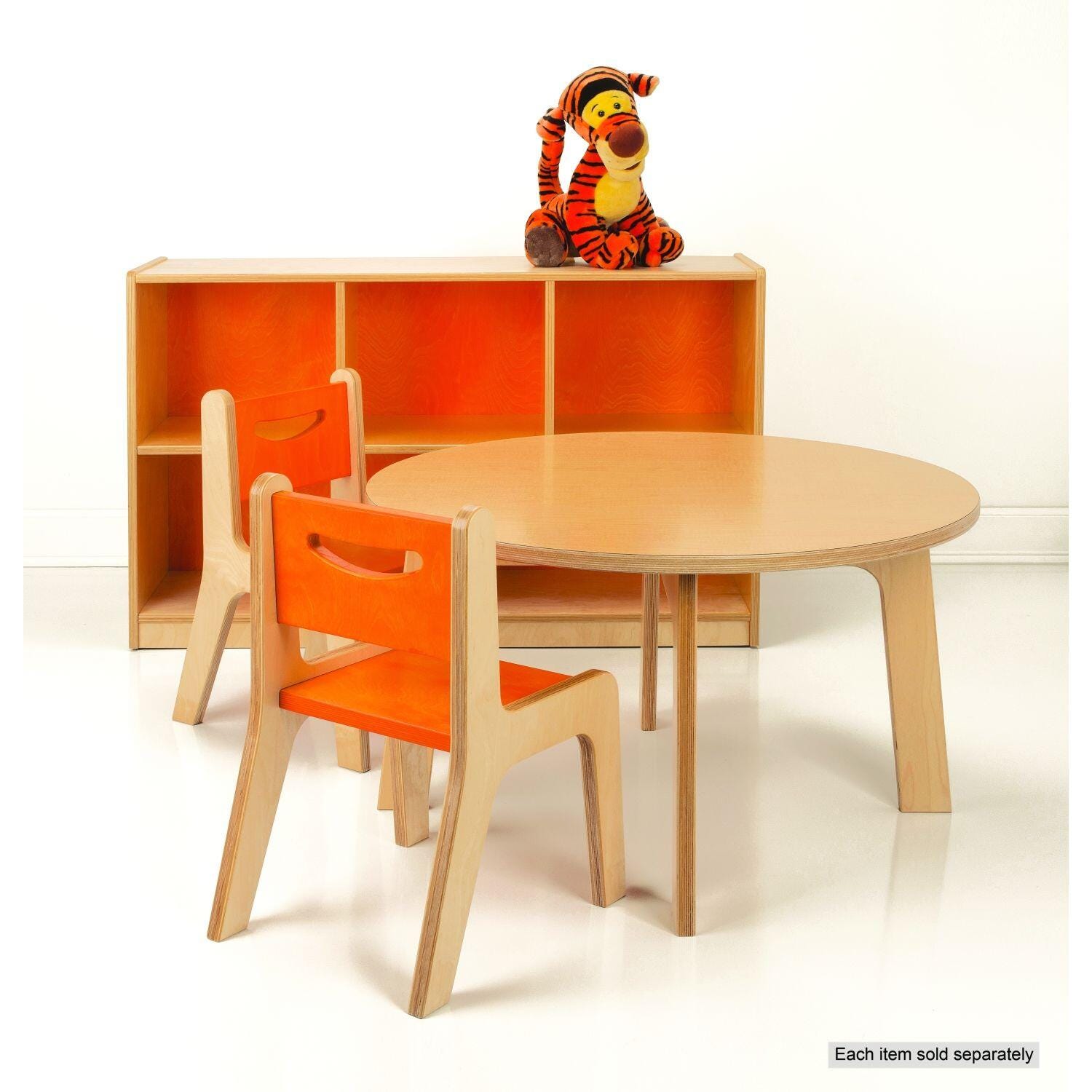 Our 20-inch height Maple Top Round Table is constructed in beautiful 1-inch thick birch plywood for superior strength and durability in a natural UV finish. The table surface is finished in the same high pressure laminate (HPL) used on kitchen counters, making these tables extremely scratch resistant and able to withstand rigorous use by children. The table is available in heights of 18, 20, and 22 inches.Features