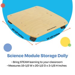 Childcraft® Science Module Storage Dolly is a wooden platform on wheels. Use the storage solution to stack science module tables and transport them from one area to another or from the closet to the classroom. Childcraft science tables are sold separately. Crafted for long-lasting use, this storage dolly is made of durable birch plywood that’s easy to wipe clean. Comes fully assembled. This storage dolly measures 19-1/2 W x 20-1/2 D x 3-1/8 inches.Features