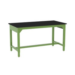 The Diversified Spaces Fab-Lab Workbench with a Phenolic top is a great choice for your science classrooms! The legs are constructed of 2 x 2-inch square steel outer tubes welded together with upper and lower cross braces, and 1-3/4 x 1-3/4 inch square steel 14-gauge inner tubes with riv-nuts spaced 1-inch on-center to provide adjustable heights from 29-1/4 inch H to 36-1/4 inch H with glides and a 1 inch thick top. An additional 14-gauge stretcher bar provides additional rigidity to the table frame; it can be installed in the front, middle, or back of the leg frame. The workbench is equipped with adjustable glides for precise leveling.