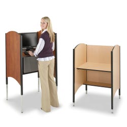 Smith Carrel Hi-Lo Study Carrel adjusts from kiosk height to keyboard height and is also ADA Compliant.