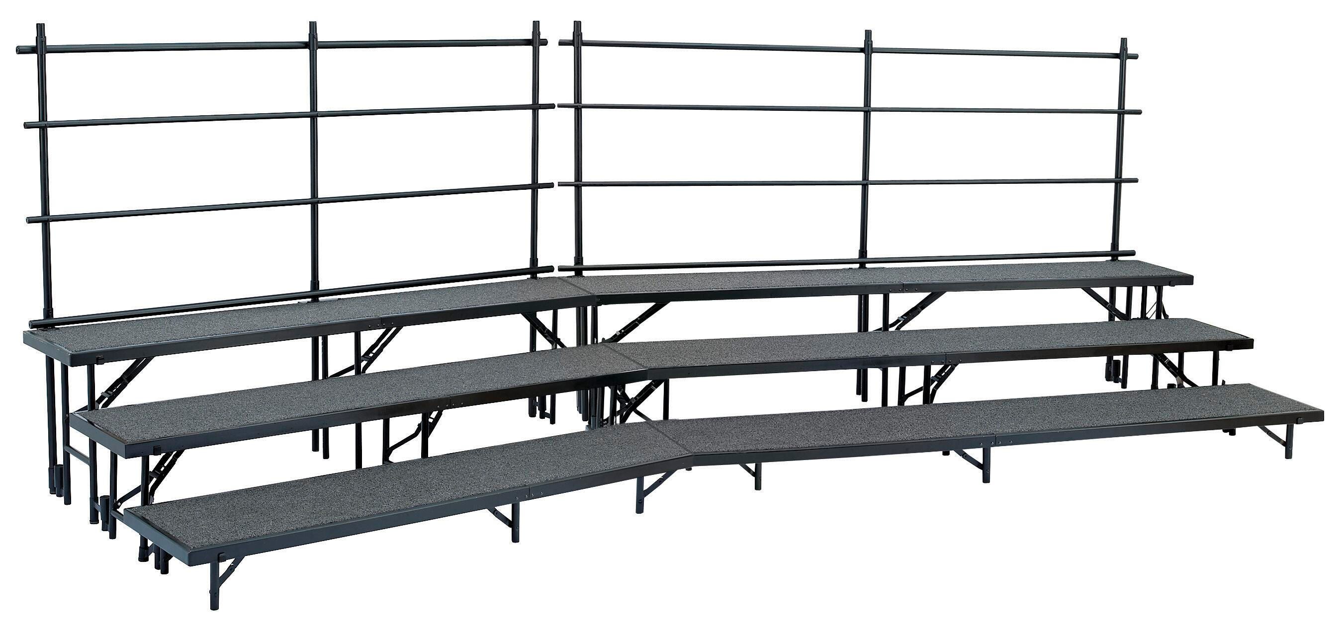 National Public Seating Black Rear Guardrail measuring 70 L x 3 D x 66 H inches is designed for use with tapered standing risers to provide safety. Guardrail is easy to assemble and install.Features