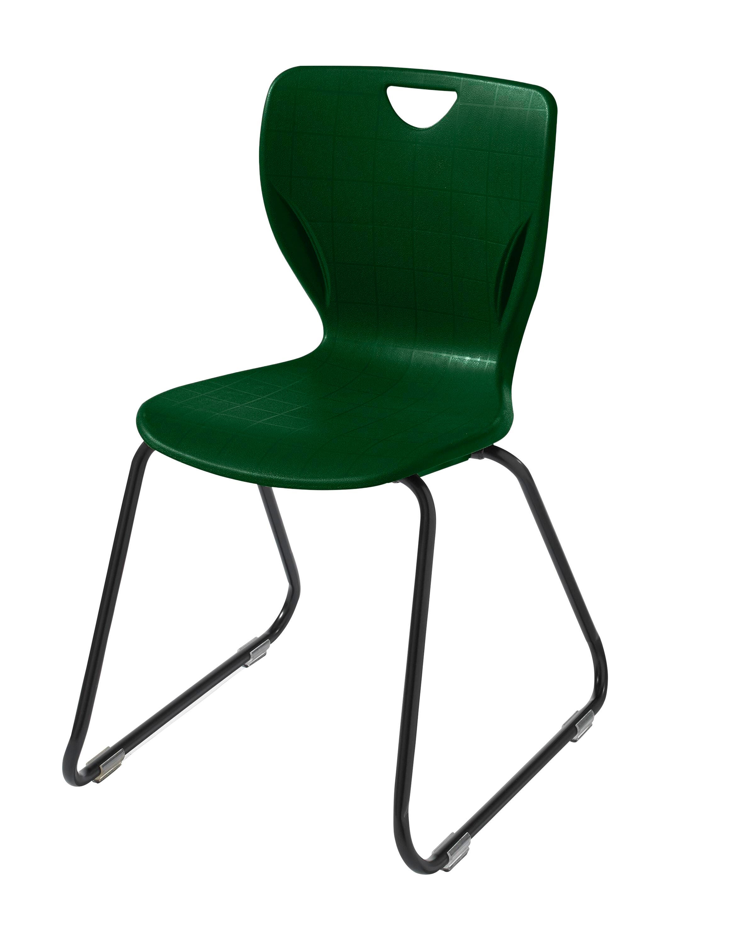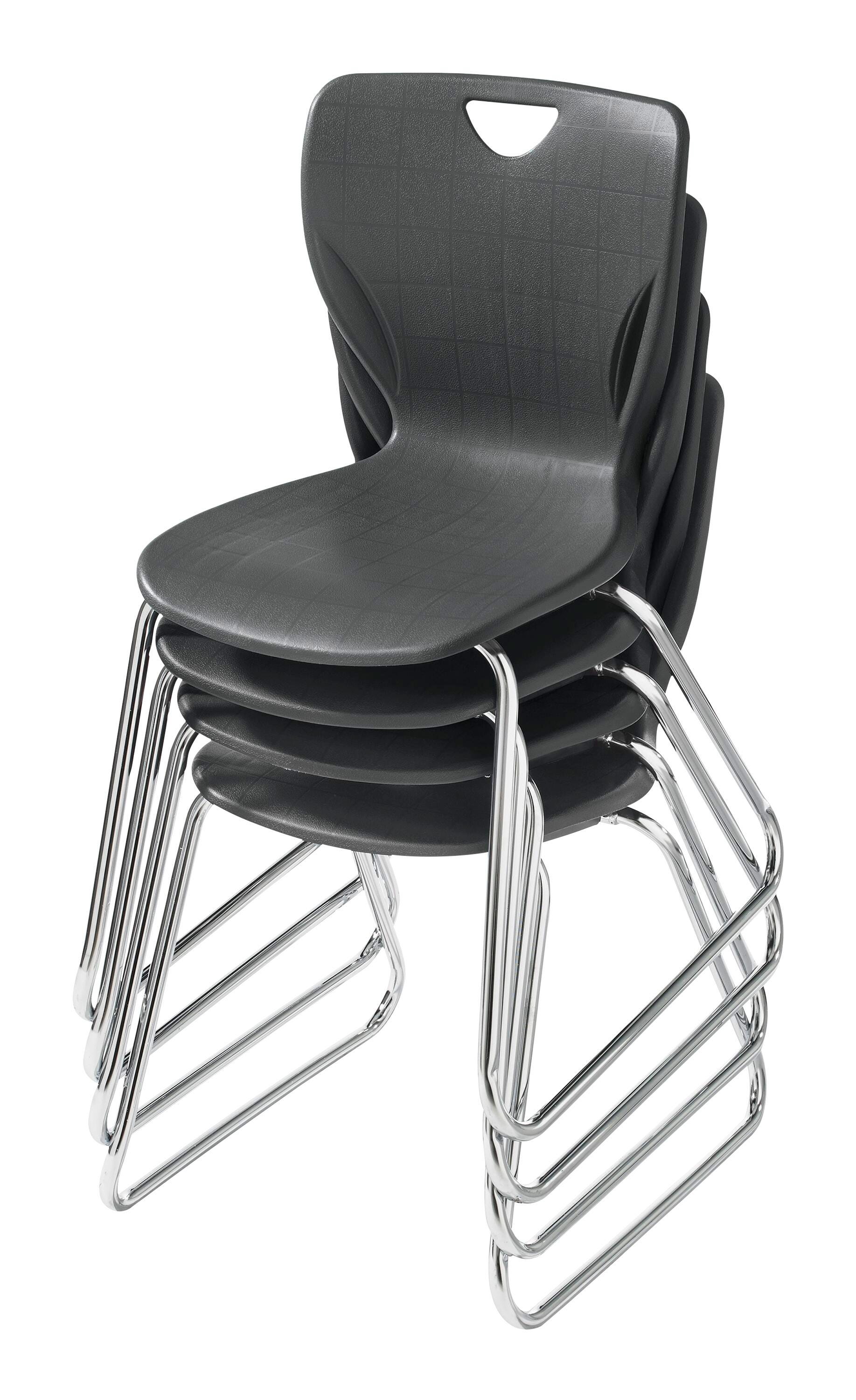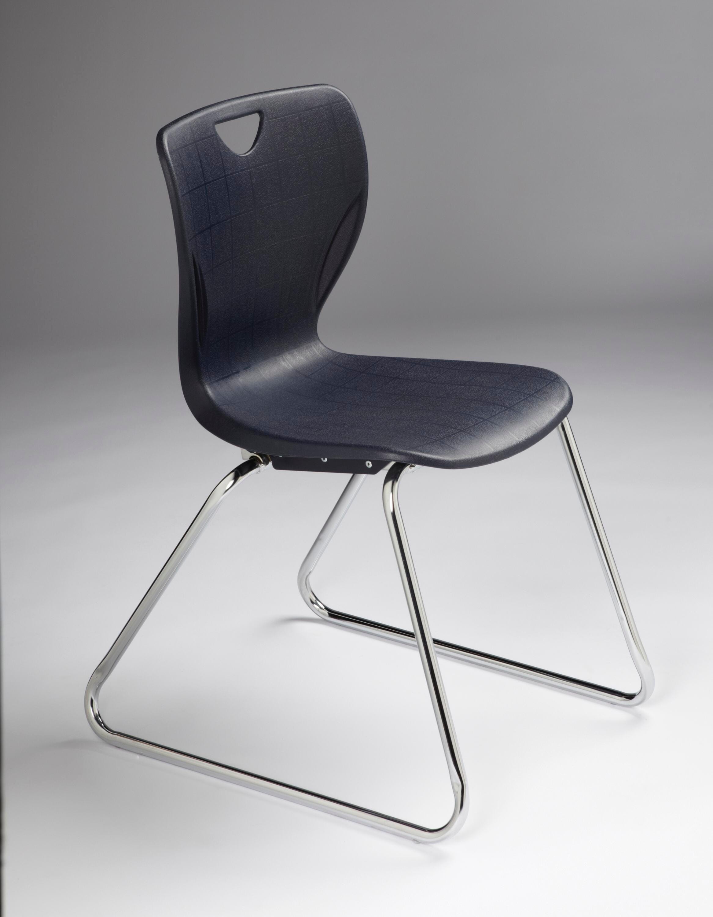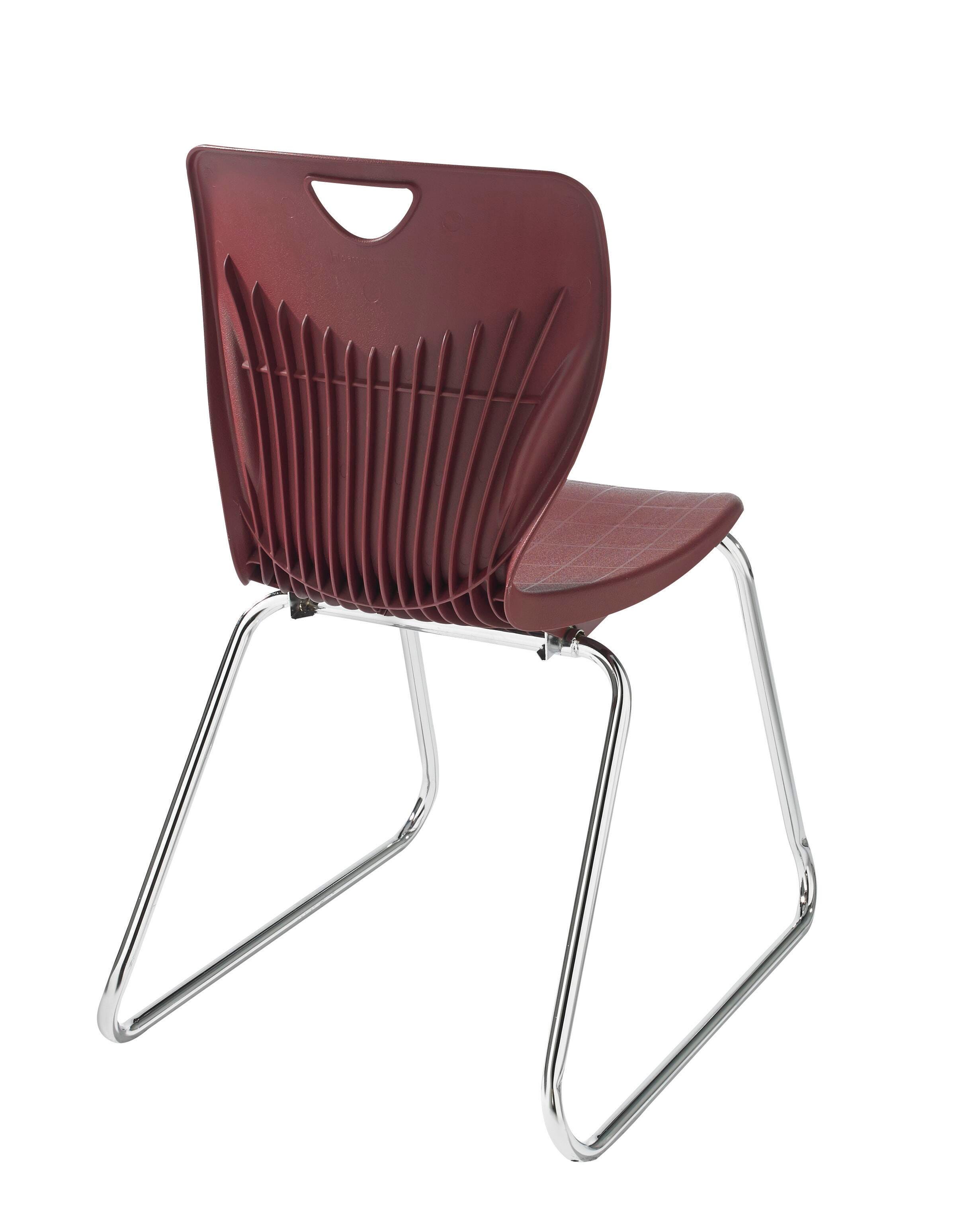 Well-fitting, ergonomic soft plastic chair features a tubular steel frame that is shaped to offer upper back and lumbar support with side-to-side flexibility that adjusts to an assortment of body profiles. The contour shape provides flexibility at the upper back while supporting the lower back. The attractive sled base offers easy movement for both the student and staff and is made of high-strength steel tubing.