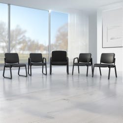 Give visitors a comfortable spot to sit with this fabric upholstered waiting room chair.