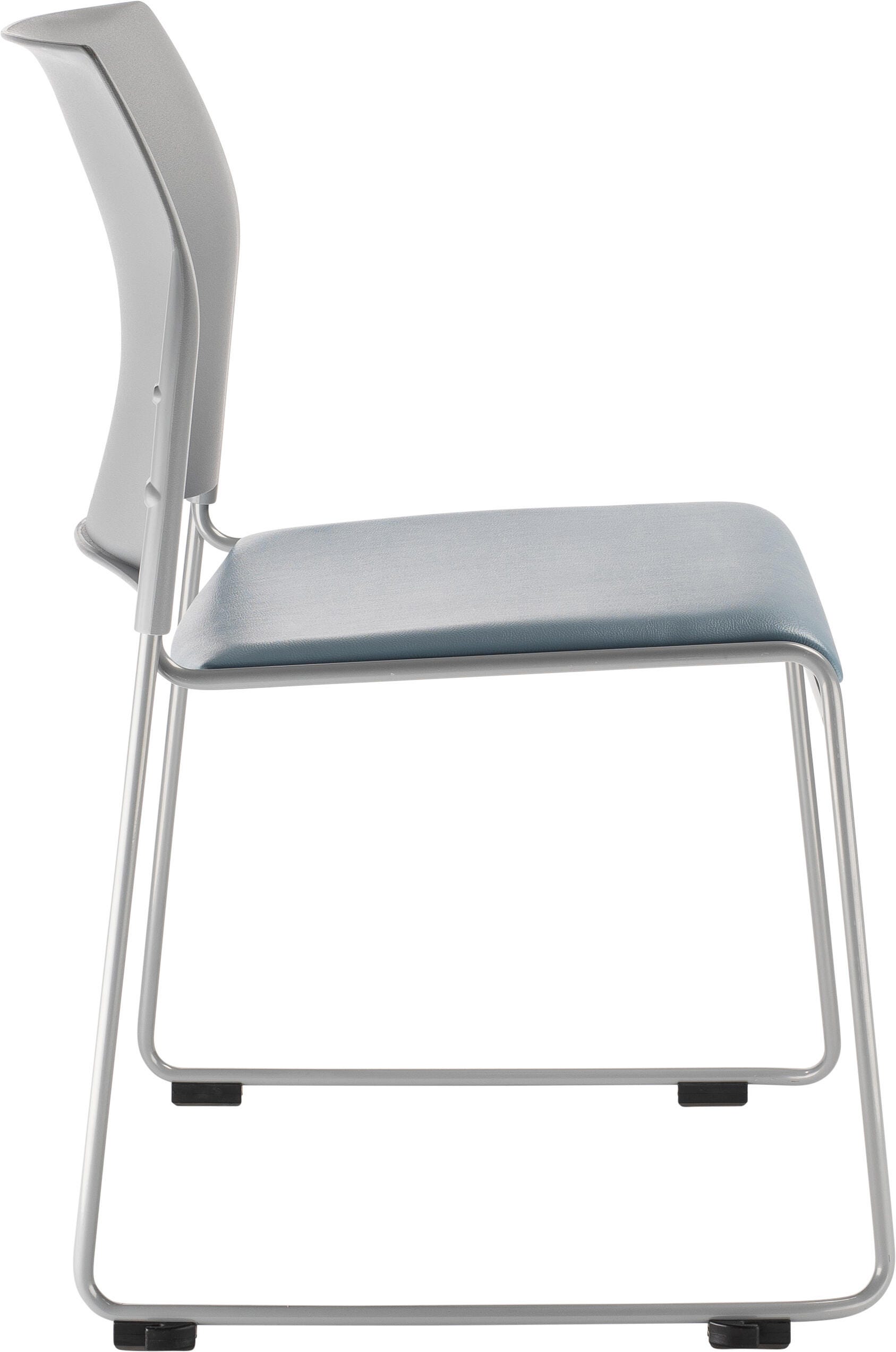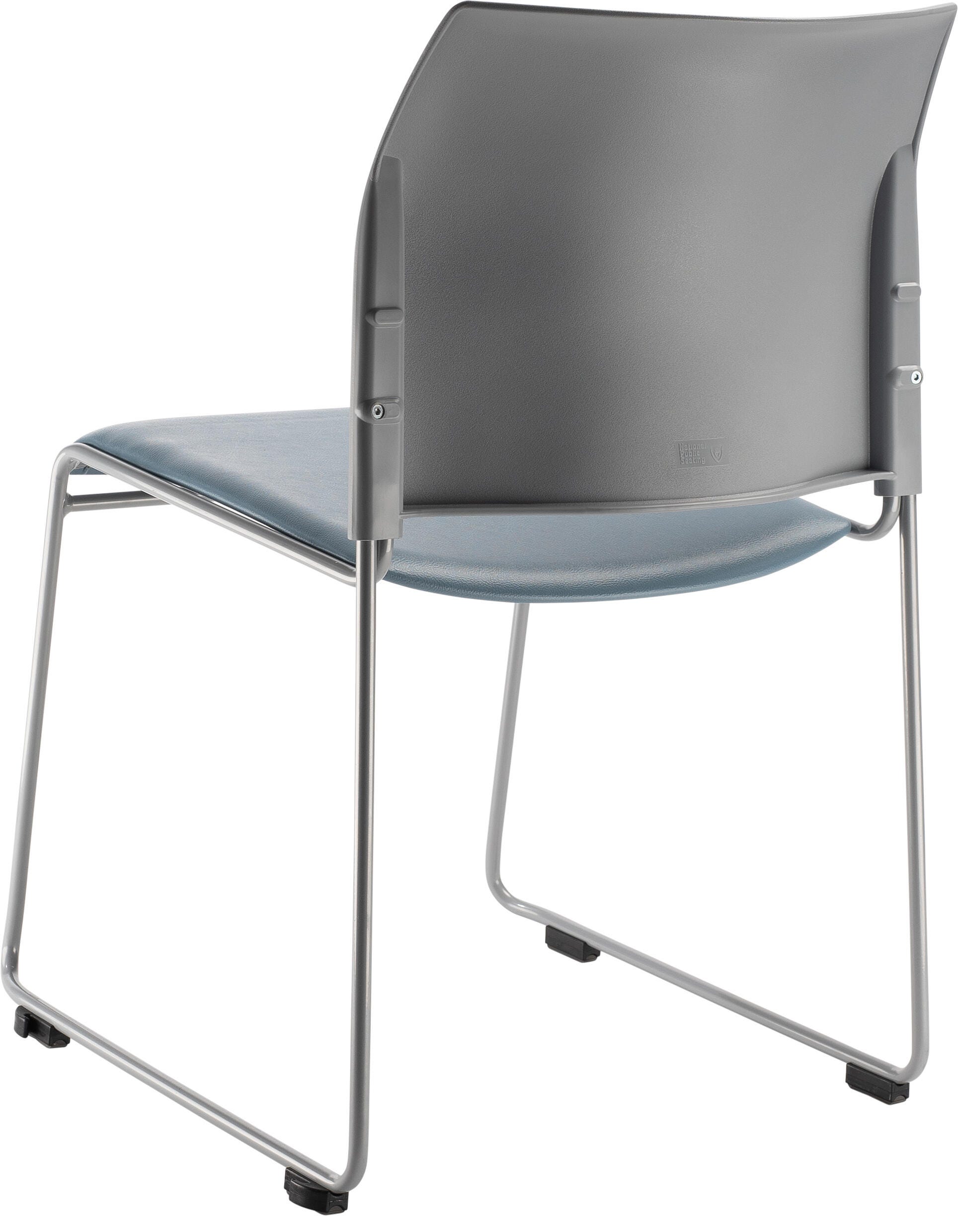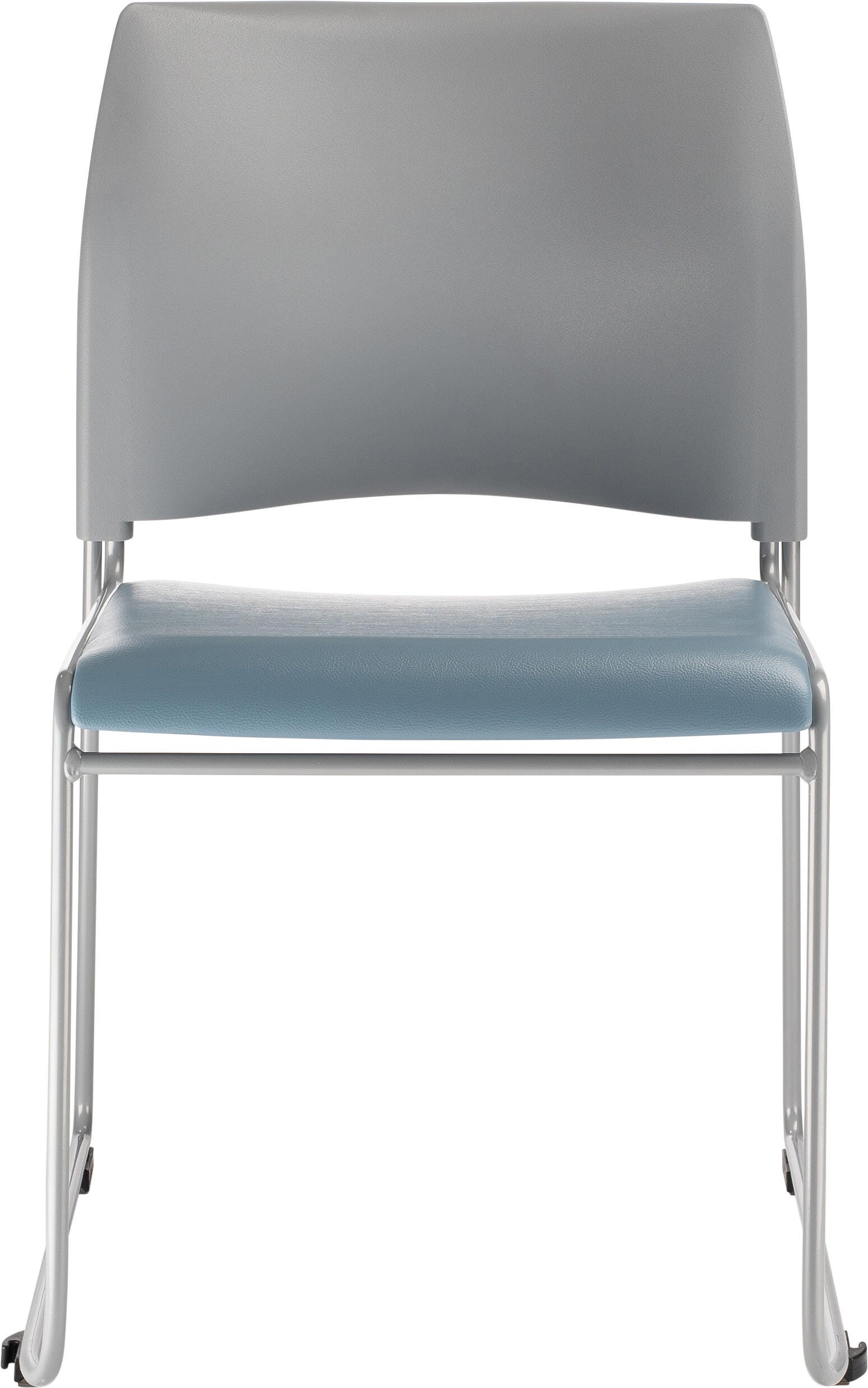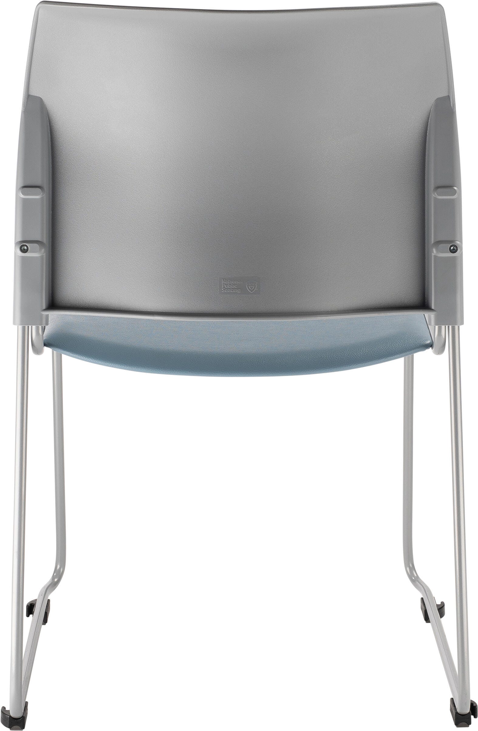 National Public Seating Cafetorium Plush Vinyl Stack Chair, 8700 Series, 18 Inch Seat Height, Blue-Gray Seat, Silver Frame