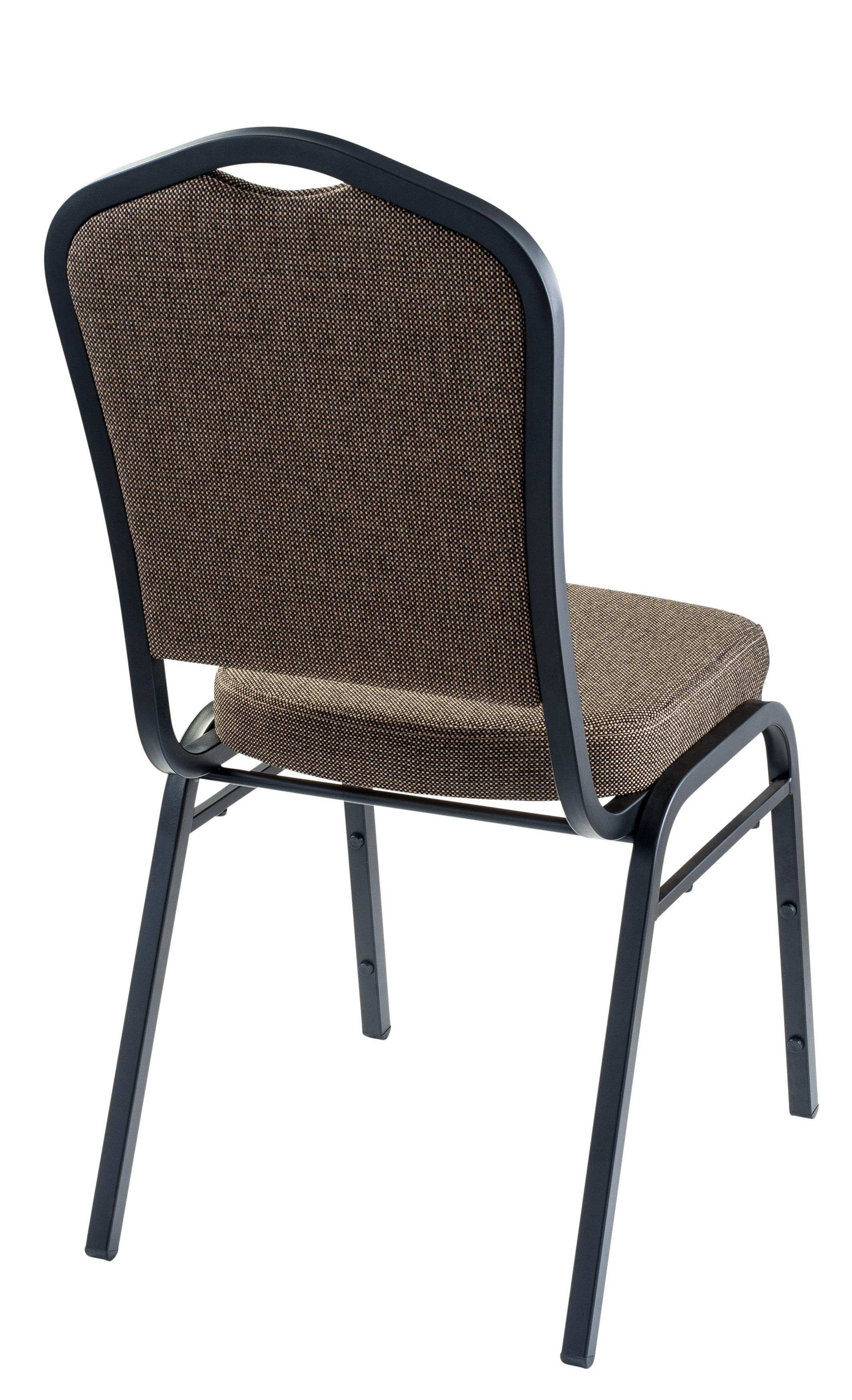 Classy meets durable with this upholstered stack chair made with a crown-style backrest! Easy portability lends a handle designed right into its backrest, with high-density foam to create a comfortable seat when placed in position. Durable. Comfortable. Classic. Made for auditoriums, gymnasiums, concert halls, pop-up events, and beyond. Complete chair measures 17-3/4 W x 22 D x 37 H inches. Seat measures 16 W x 15 D x 19 H inches. Back measures 16-1/4 W x 17-1/4 H inches.