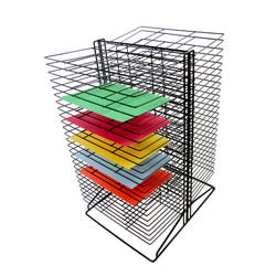 Intuitive design, made to match your space. The Sax Table Top Drying rack features a classic black powder coat finish that protects it from corrosion, making it resistant to scratches and other light abrasions that may happen in your dynamic space. The drying rack sits on a reinforced base that surrounds the whole rack, which keeps the shelves stable even when they're fully loaded. It features 50 shelves, 25 shelves per side, for ample space to store projects and plenty of space between shelves to allow airflow for quick and efficient drying. This intuitive art storage and drying center measures 16 L x 20 W x 30 H inches.Features
