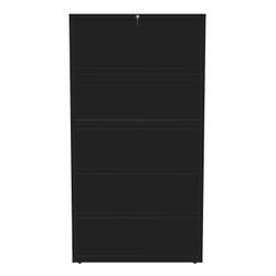- Lateral file cabinet with hanging file rails provides attractive, lockable, and concealed storage and easy side-by-side filing access to letter, legal, or A4 paperwork