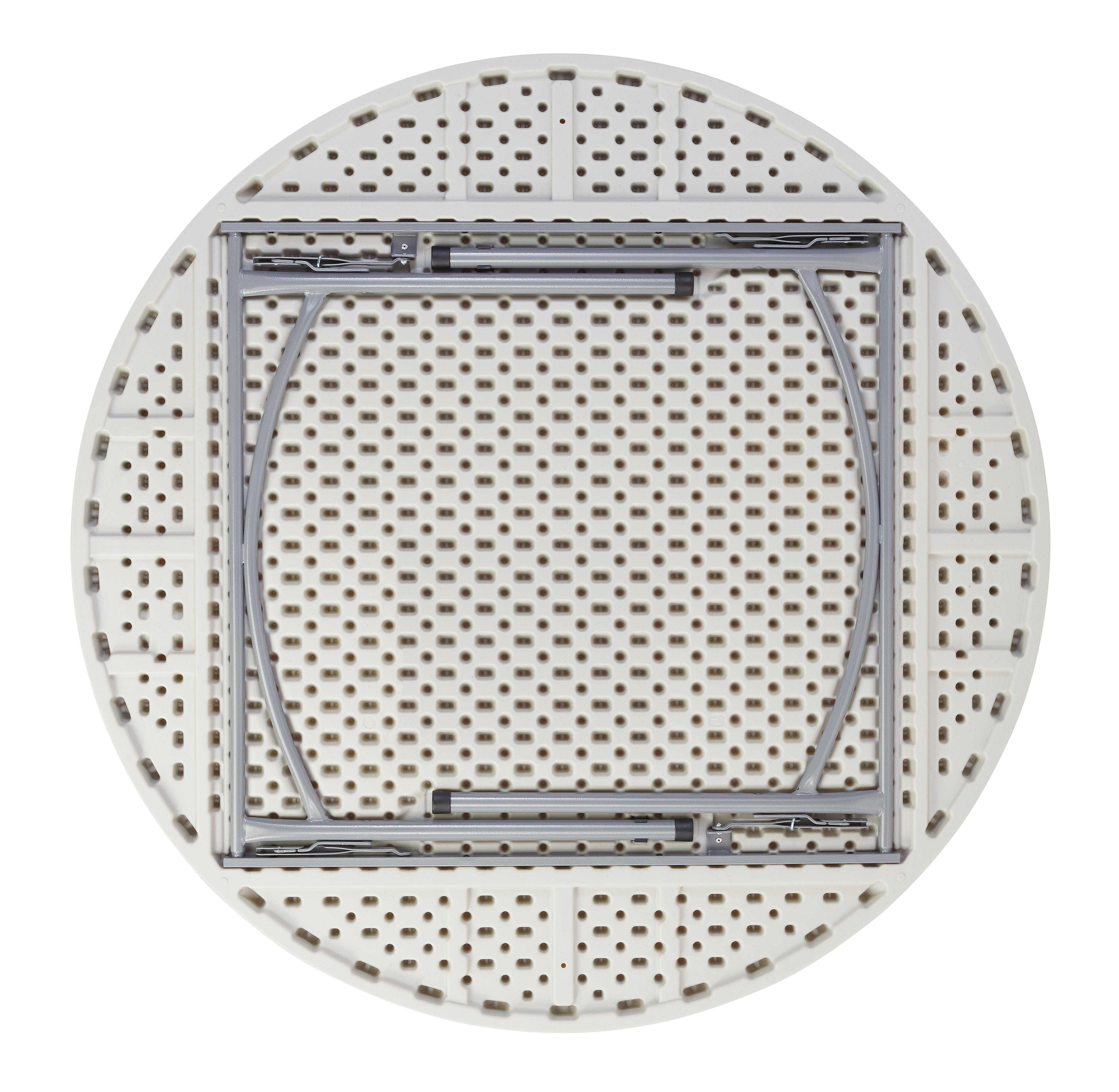 Gather around this circular folding table that's heat resistant, durable, and perfect for multi-purpose use.