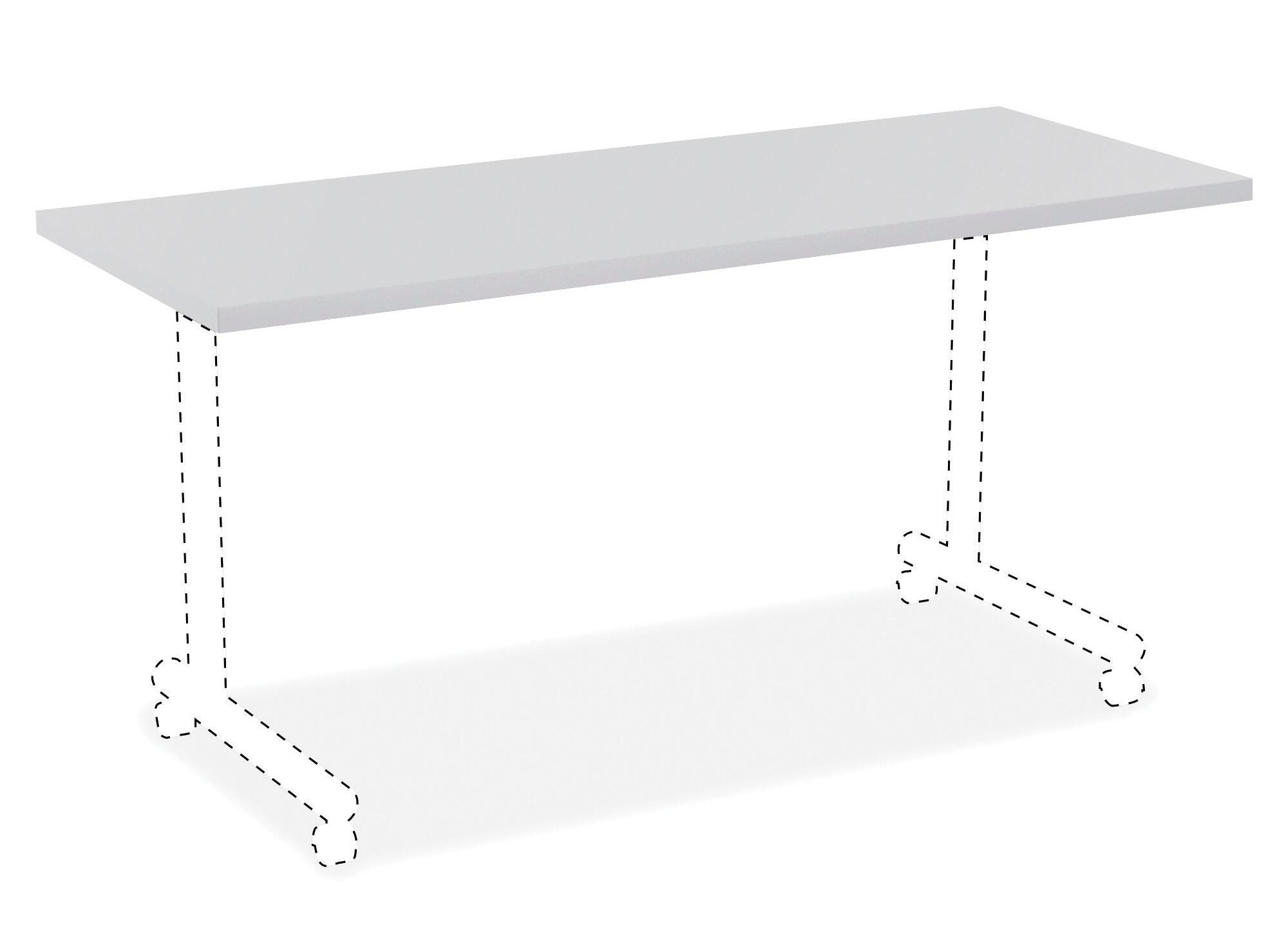 Lorell Training Table Collection offers convenient configurations for your training needs with our Rectangular Invent tabletop. 1 inch thick top is made with high-pressure laminate for a durable work surface. Stain-resistant, scratch-resistant laminate is thermofused on the top and bottom to 45 lb density particleboard core. Design also features matching, Light Gray PVC edge and squared corners so tables smoothly fit together in groups. Optional ganging connector (sold separately) secures tables together and quickly detaches for easy reconfiguration. Optional modesty panels (sold separately) include wire channels for wires to pass through the bottom of the panel. Tabletop includes a predrilled hole for easy mounting of the C-leg base with casters or glides (sold separately).