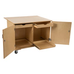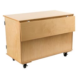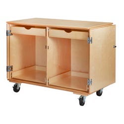 Classroom Select Mobile Workbench provides both storage and work surface space to make the most of your makerspace and robotic project area. Organize components, supplies, or tools with two spacious upper closed drawers; or carefully store and remove those more delicate pieces on the easy pull-out lower shelves. The top expands an additional 12-1/4 inches to a full 36 inch depth work surface for even ample room! Each cubby offers a generously sized capacity of 21 W X 18 D X 23 H inches. The unit includes locking, extra durable casters (measuring 4 inches each) for ease of movement. Full unit is made from durable Birch Maple and has the option to lock. GREENGUARD Certified.Features