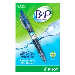Pilot B2P BeGreen Refillable Retractable Gel Pen Fine Tip, Blue Ink, Pack of 12