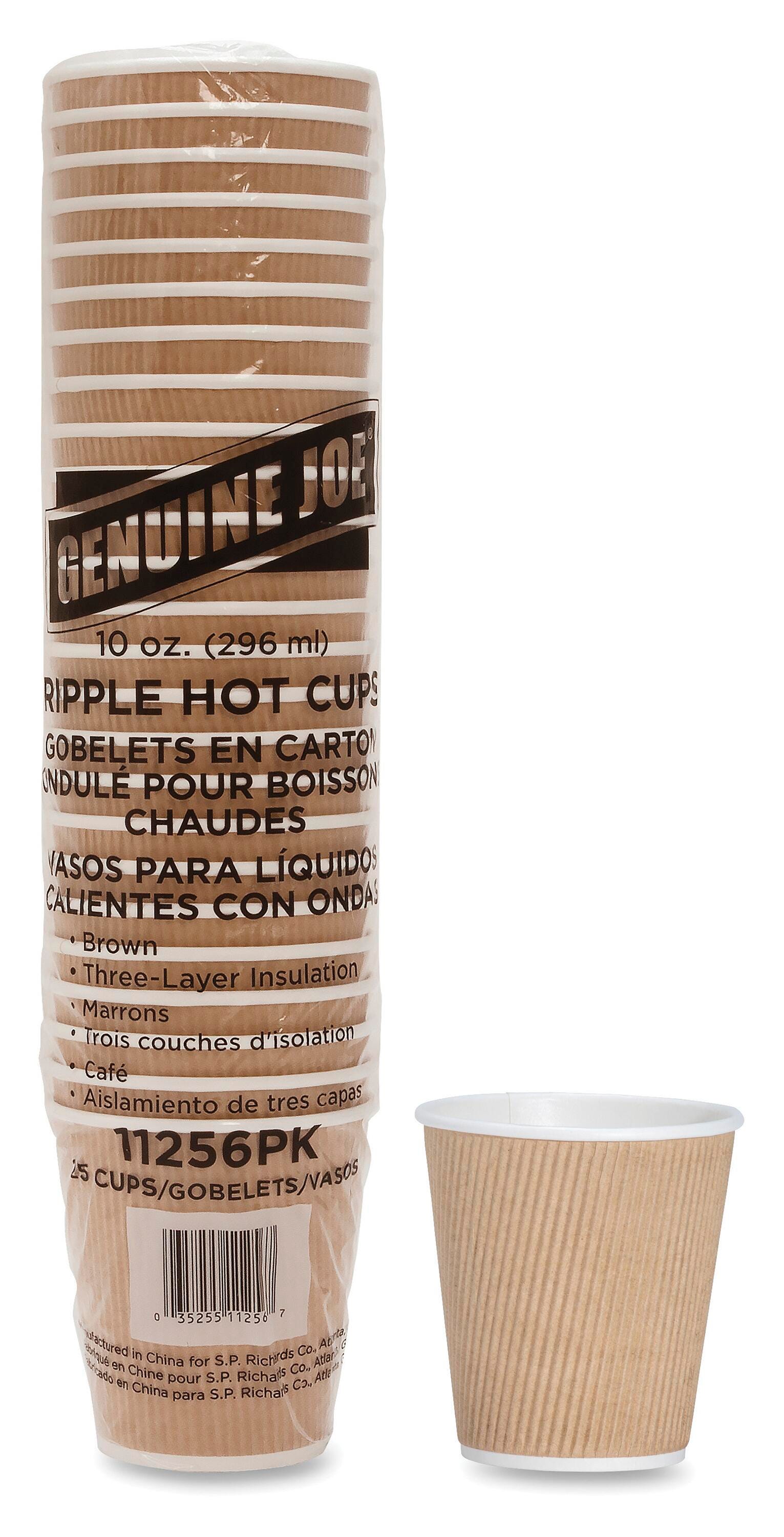 Genuine Joe 3-Layer Rippled Hot Cup, 10 oz, Brown, Pack of 25