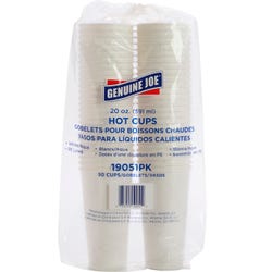 Genuine Joe Disposable Hot Cup, 20 oz, White, Pack of 50