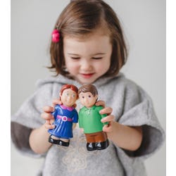 This set of 16 chunky multicultural family members is soft, friendly, and durable. The set includes 4 Caucasian, African American, Hispanic, and Asian figures. Adults are 5 inches, children are 4.5 inches. Set for ages 12 months and up.Features