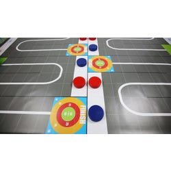 Navigate the maze from start to finish using motor controls or sensor controls. This mat also supports the use of game pieces that allow for additional activities and challenges. The Robotics Maze Mat is a great first step for students to establish a foundation in programming and robotics while also developing problem-solving and critical thinking skills at the same time. This mat is thoughtfully designed with teachers in mind and allows multiple student groups to use the mat simultaneously. Easy to use, engaging, and educational Robotics activities. Multiple challenges mean hours and hours of fun, hands-on lessons. Perfect for all skill levels. From beginners to more experienced students, these mats provide challenges that keep everyone excited and learning. Works with a wide variety of robots, including: LEGO Mindstorm EV3, LEGO Spike Prime, VEX IQ, Dash & Dot, Cue, mBot, Edison, UBTECH, etc. Mats can accommodate up to 4 robots/groups of students at a time, making them perfect for large or small classes. Made of durable 13oz matte vinyl material that is designed to last. Mats roll up for convenient and easy storage when not in use. 44-3/4 W x 80 L inch size fits on standard FLL competition tables or can be used on the floor. Teaches programming, basic navigation, engineering, sensor use, line detection, object manipulation, and more. Includes 8 game pieces (4 red, 4 blue).Features