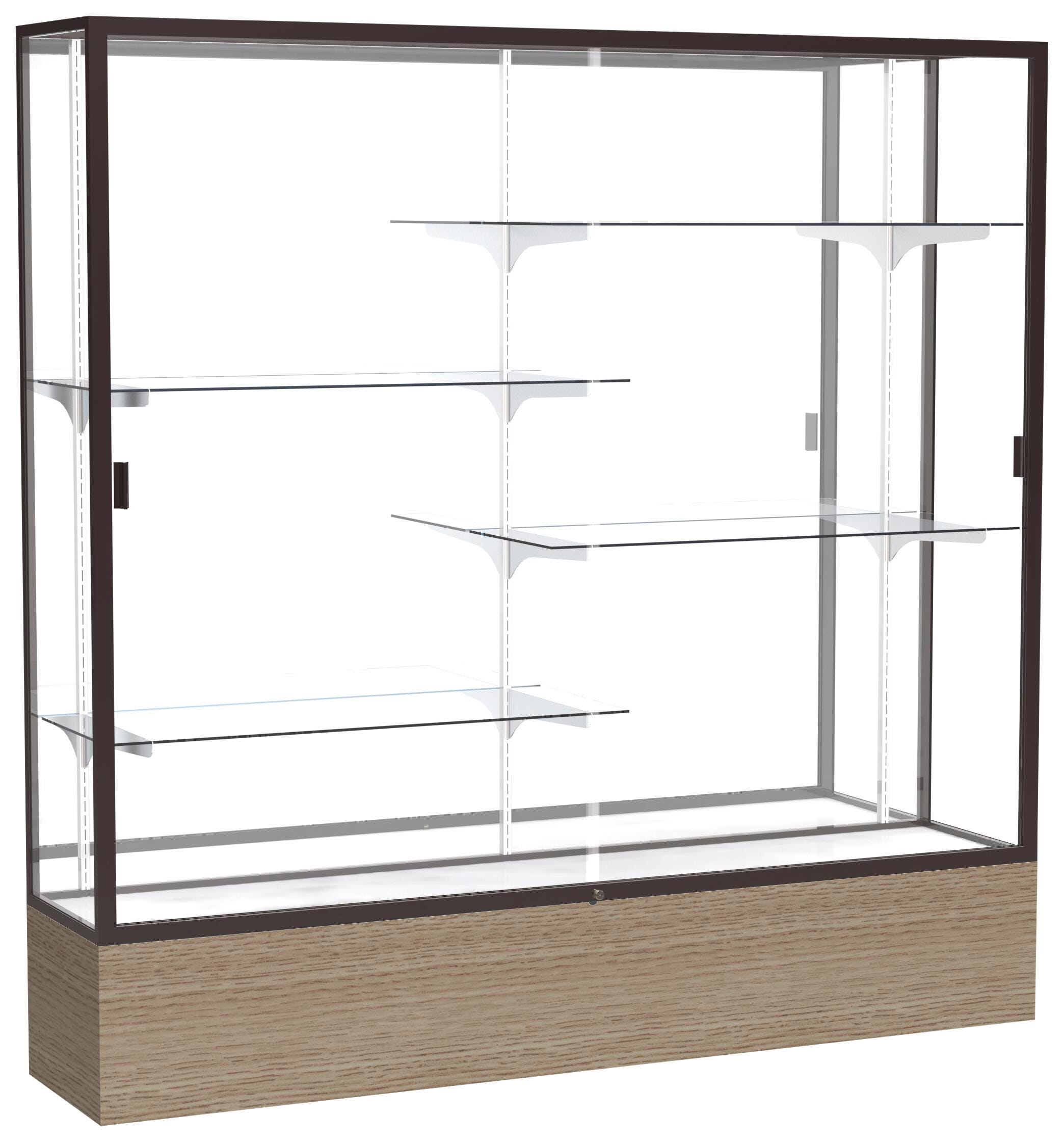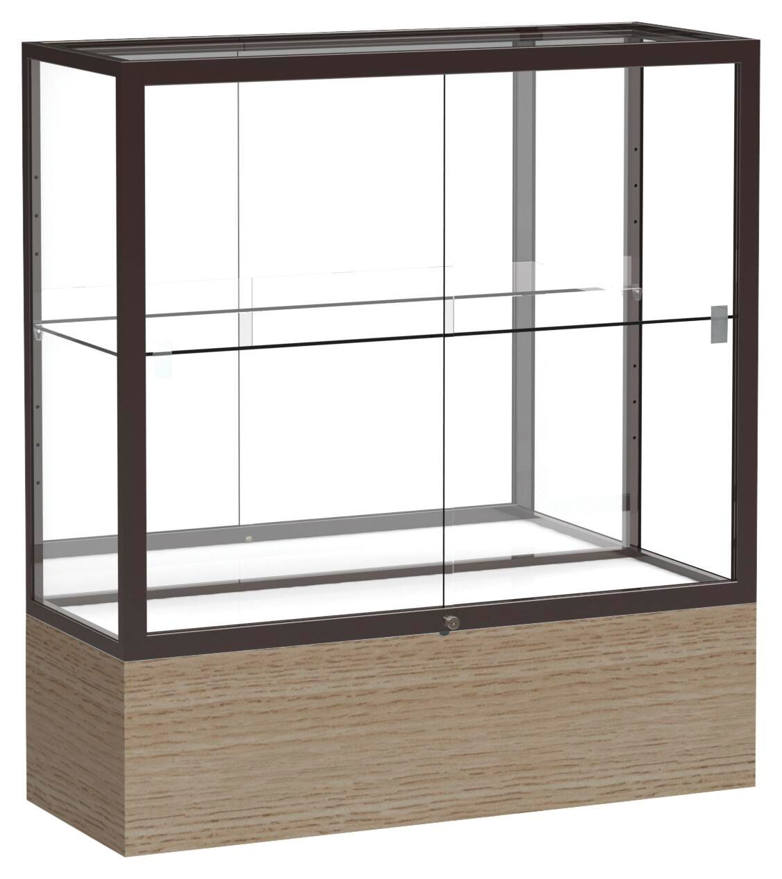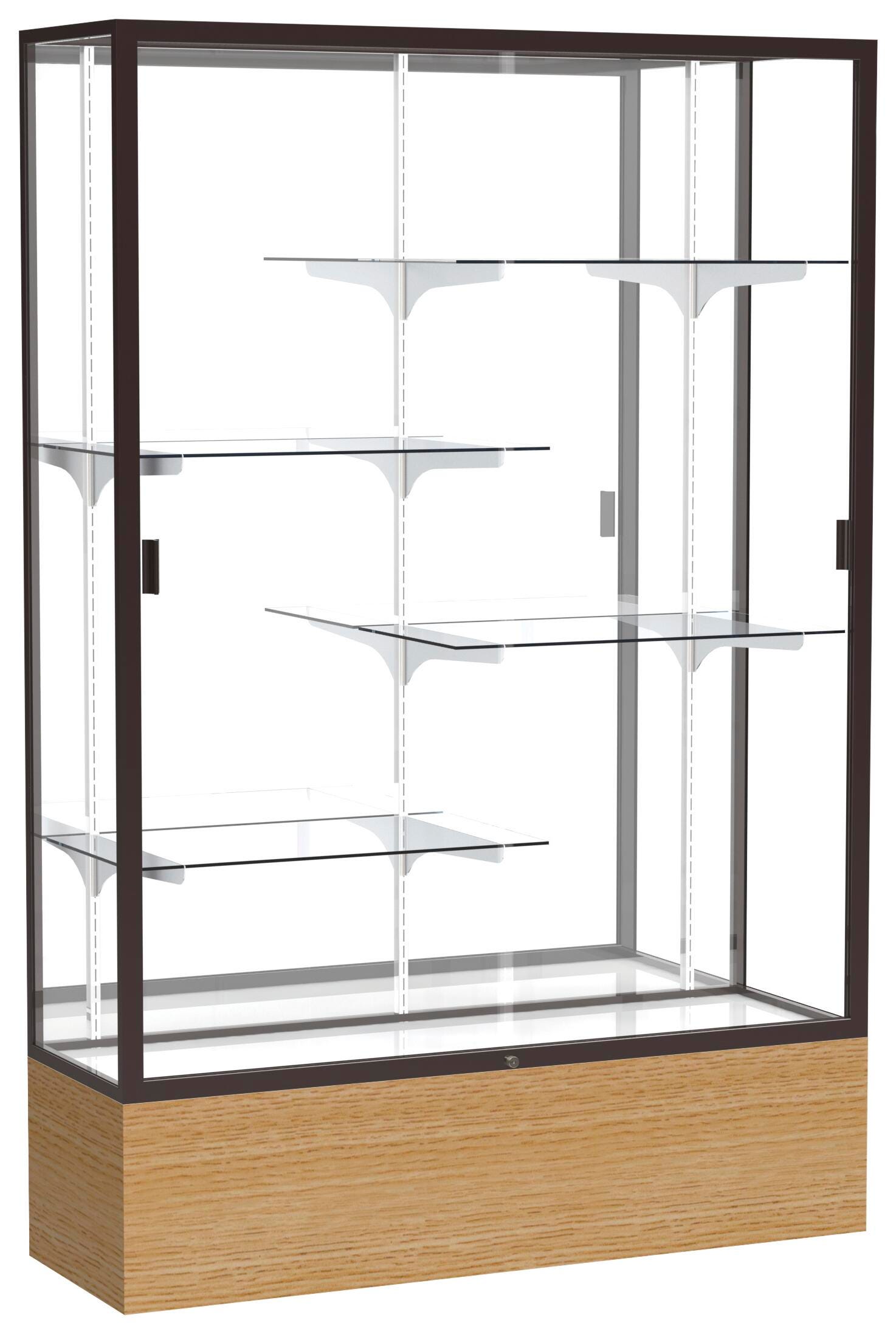 Description Ghent Reliant Series Display Case combines the strength and durability of aluminum with either wood vinyl or veneer to showcase your memorabilia. Illuminate and customize your display with a lighted cornice and adjustable shelving. Reliant integrates well in both traditional and contemporary settings, with its clean, uncluttered appearance.Features Versatile wood grain vinyl or oak veneer Anodized aluminum framing Adjustable shelves