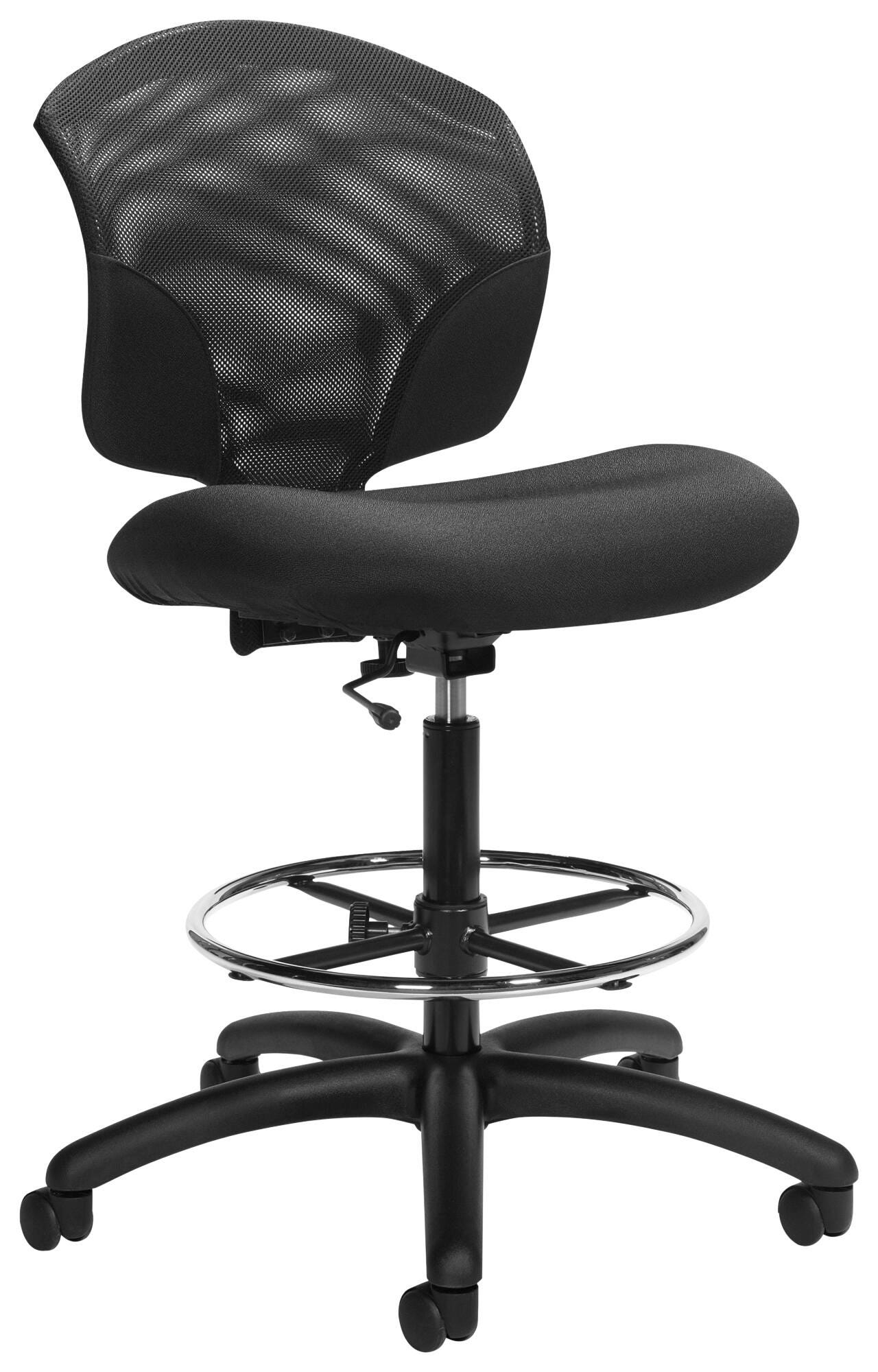 - Ergonomic drafting chair has breathable, air-flow friendly mesh mid back and mesh fabric pneumatic (body-conforming) seat for daily sitting comfort