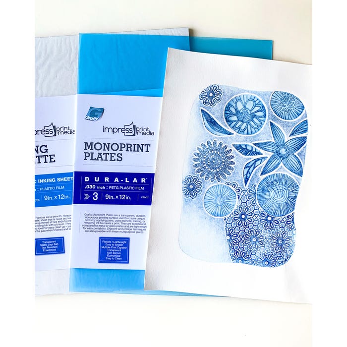 Easy to clean Monoprint Plates are a transparent, durable, nonporous printing surface used to create unique prints by applying paint, using stencils, tracing, or removing ink to create a print. They are economical compared to metal or glass plates and are lightweight form easy portability. Drypoint and collage techniques are also possible with these multipurpose plates.Features