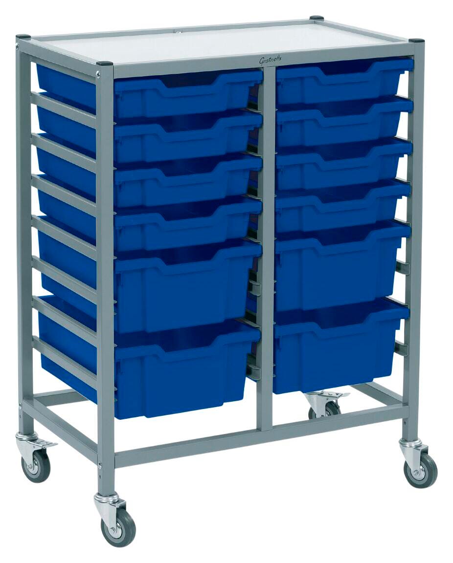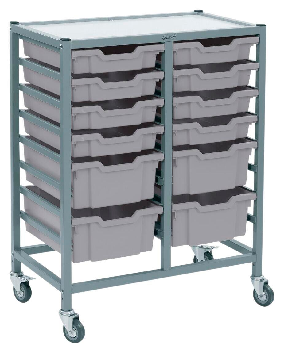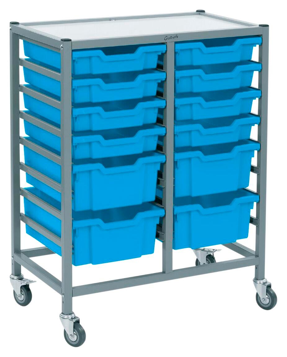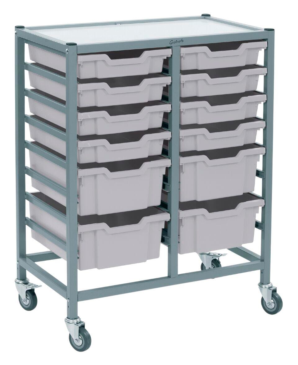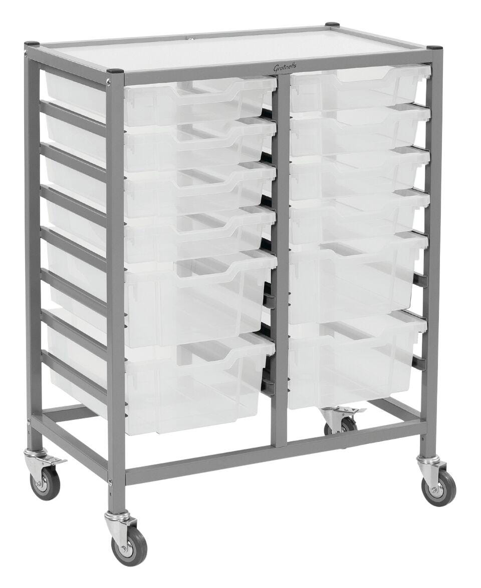 Gratnells Dynamis Double Cart, 8 Shallow F1 and 4 Deep F2 Trays, 28 x 16-3/5 x 33-1/2 Inches