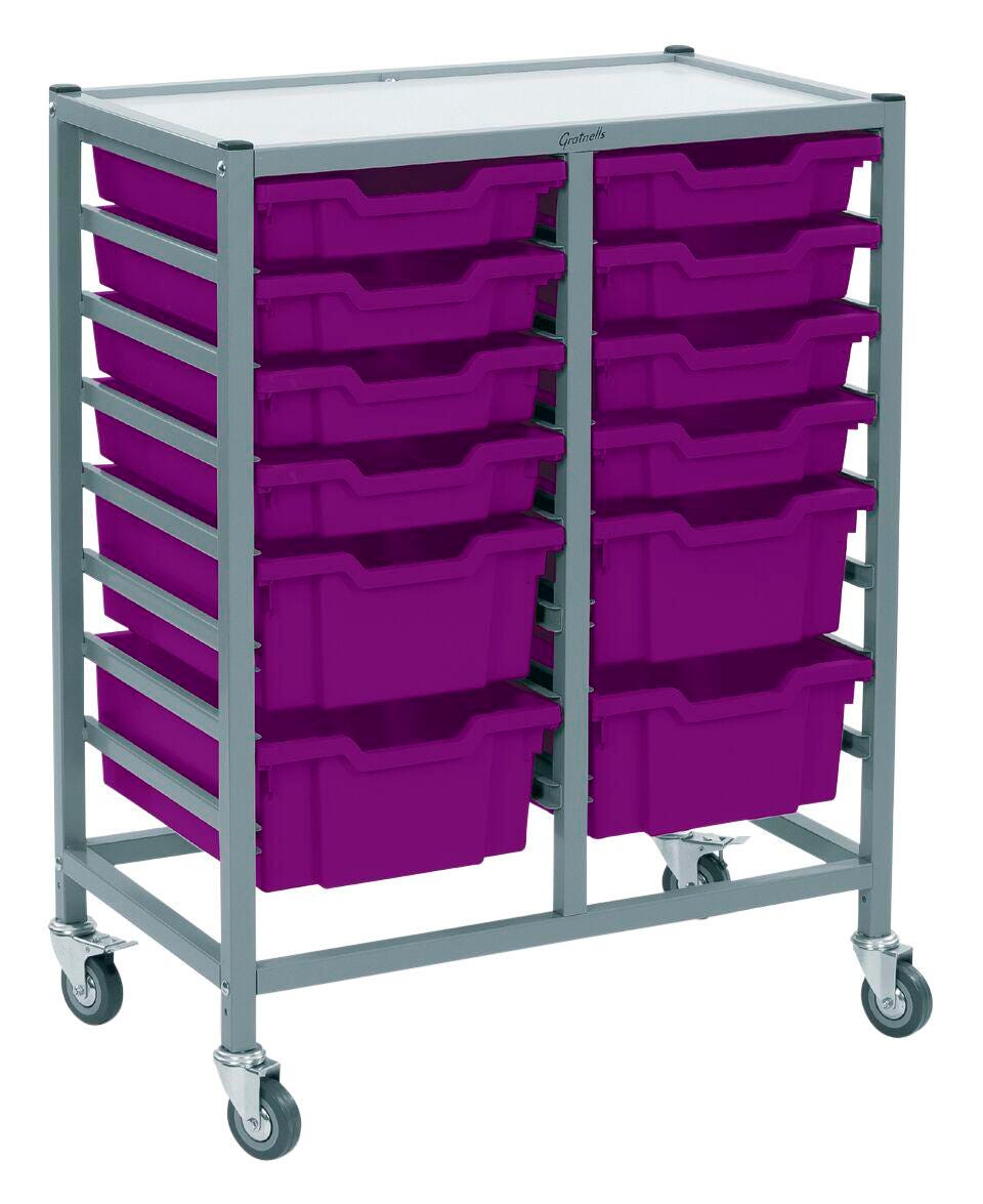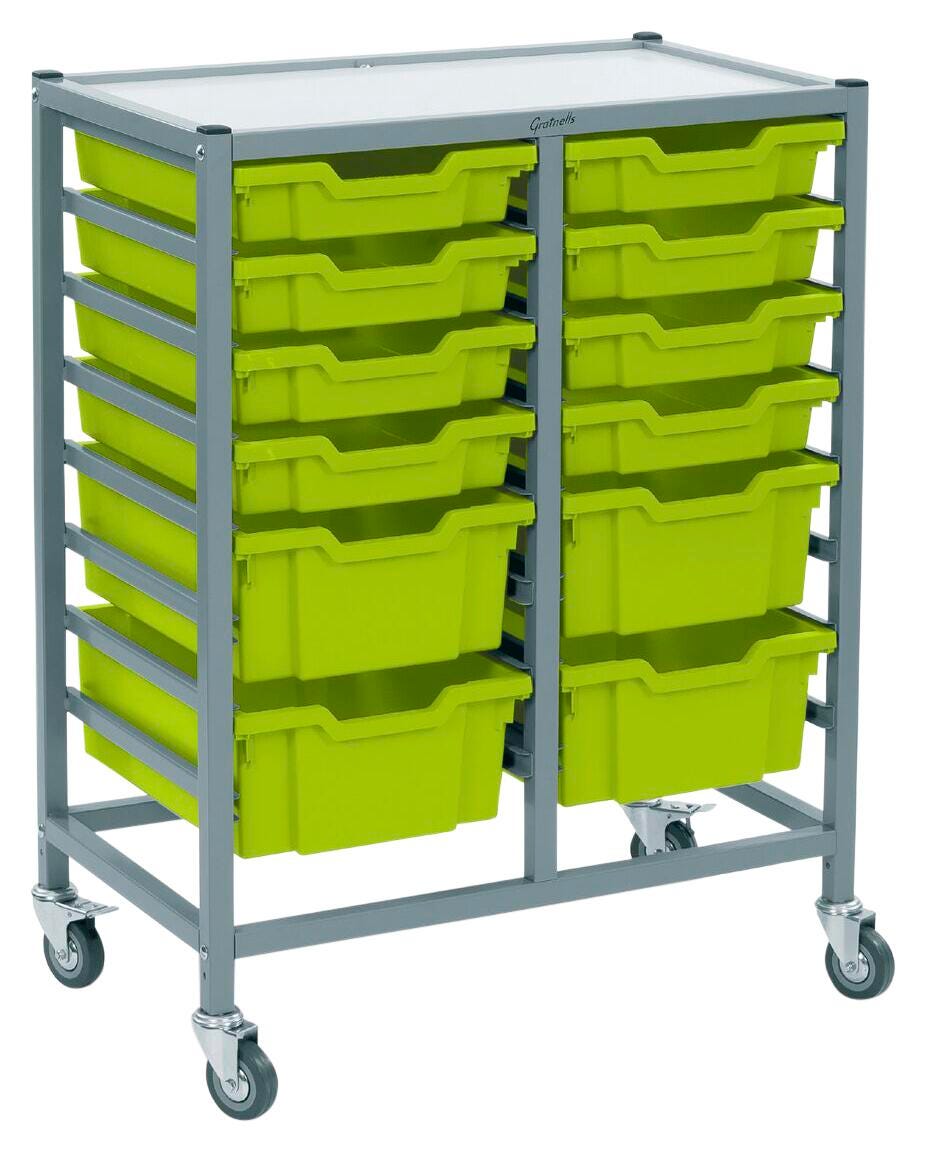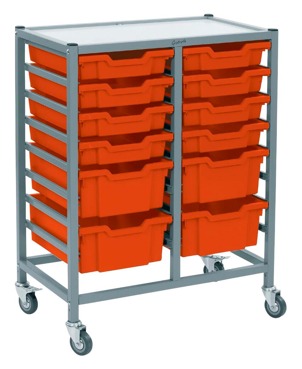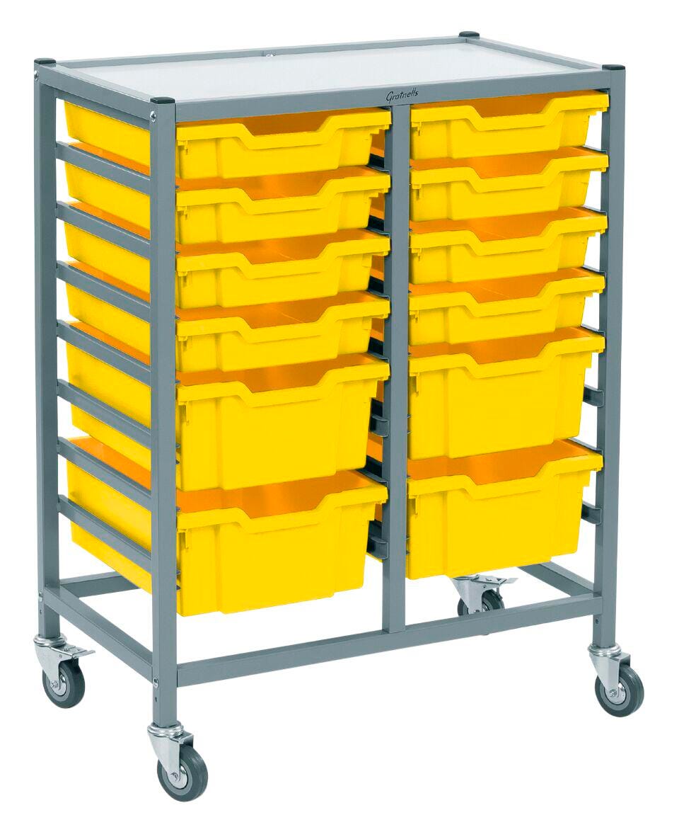Gratnells Dynamis Double Cart, 8 Shallow F1 and 4 Deep F2 Trays, 28 x 16-3/5 x 33-1/2 Inches