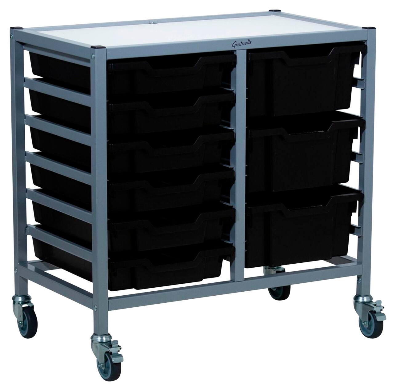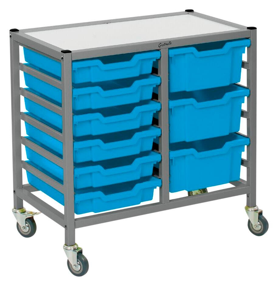 Gratnells Dynamis Low Double Cart, 6 Shallow F1 and 3 Deep F2 Trays, 28 x 16-3/5 x 28-1/5 Inches