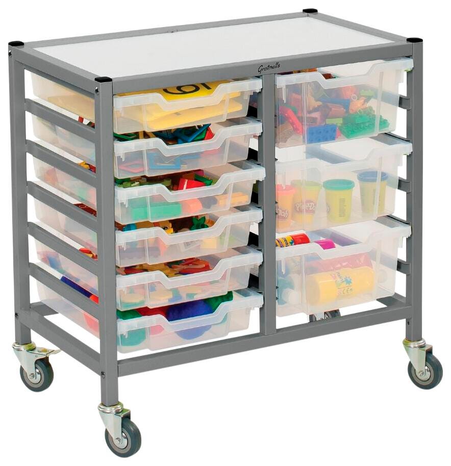 The Gratnells Dynamis Low Double Cart with trays will bring an abundance of storage to school classrooms without sacrificing space!