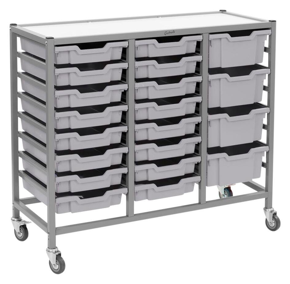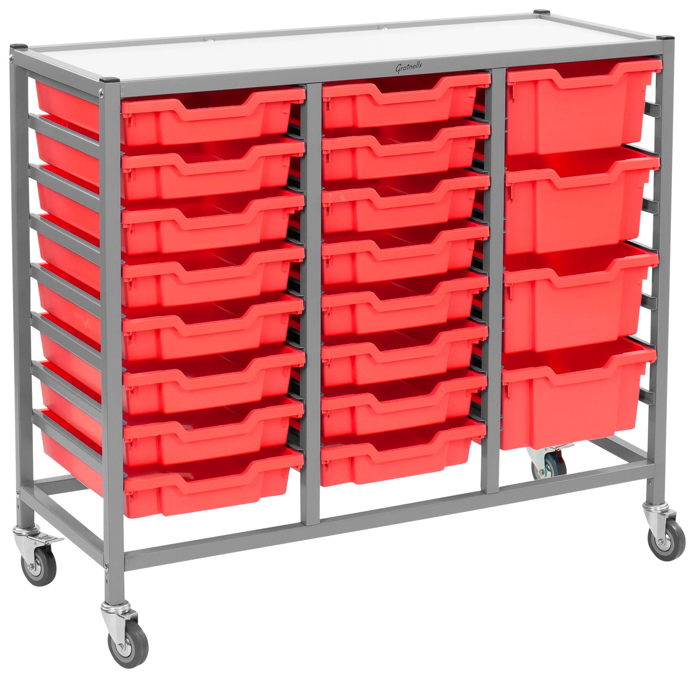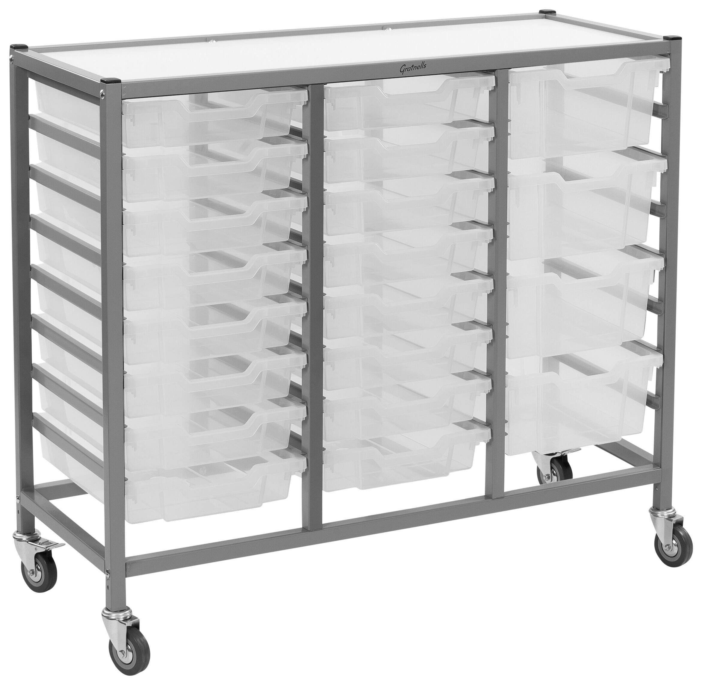 Gratnells Dynamis Treble Cart, 16 Shallow F1 and 4 Deep F2 Trays, 41-1/2 x 16-3/5 x 33-1/2 Inches