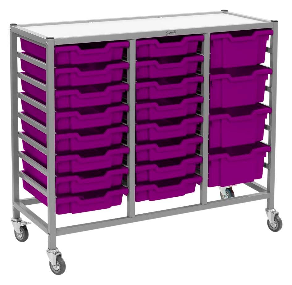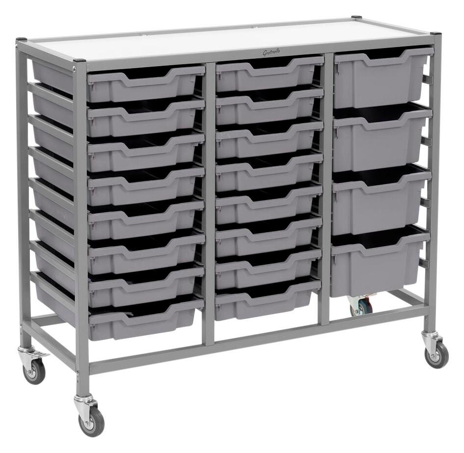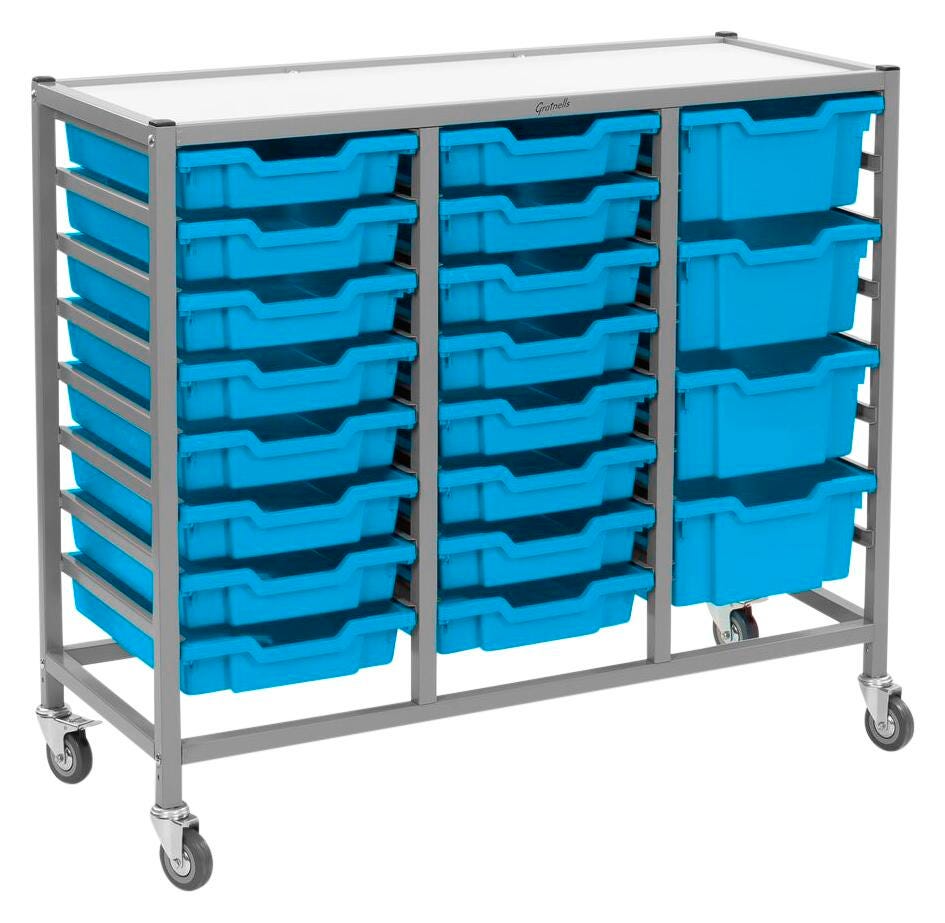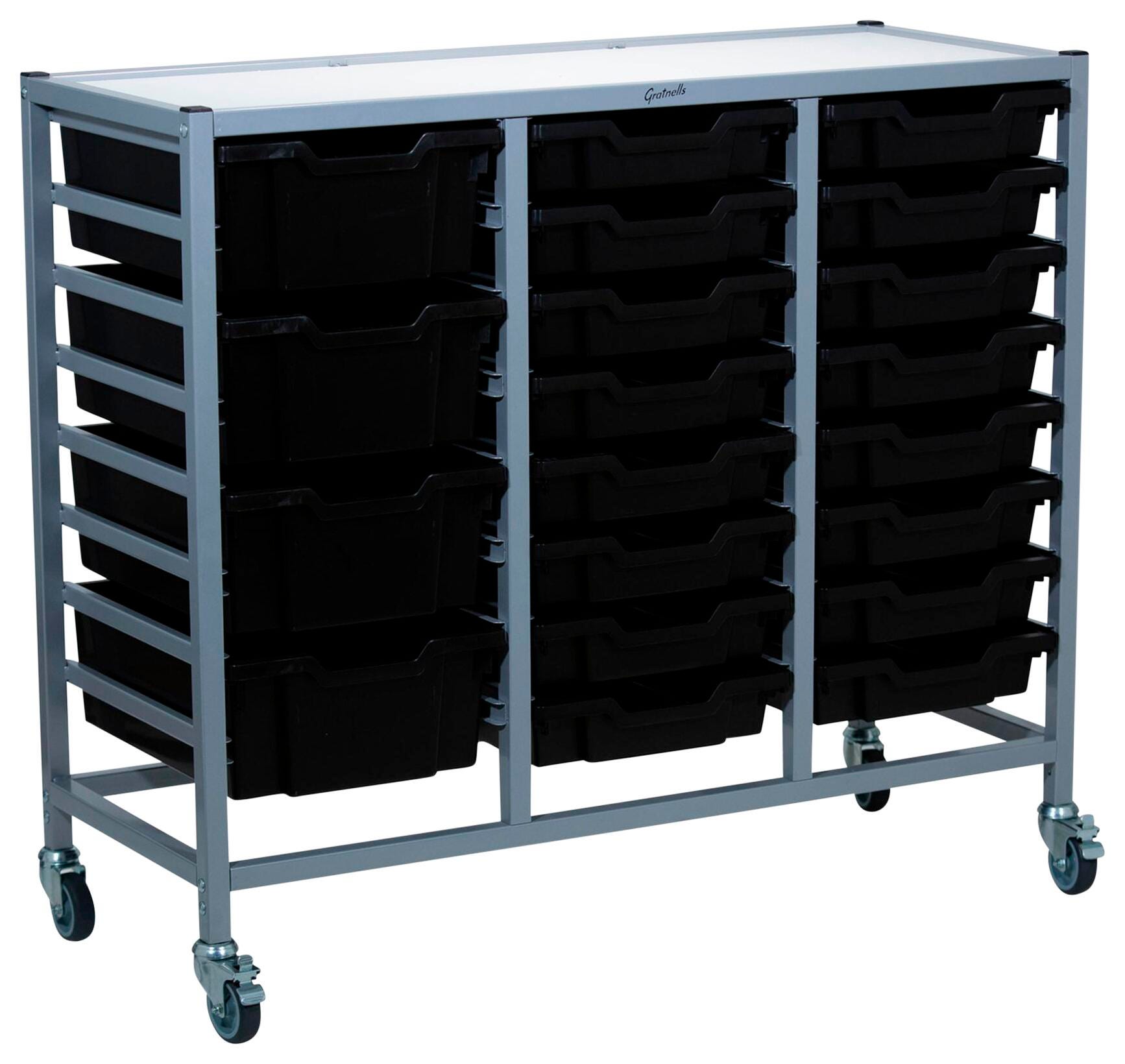 Gratnells Dynamis Treble Cart, 16 Shallow F1 and 4 Deep F2 Trays, 41-1/2 x 16-3/5 x 33-1/2 Inches