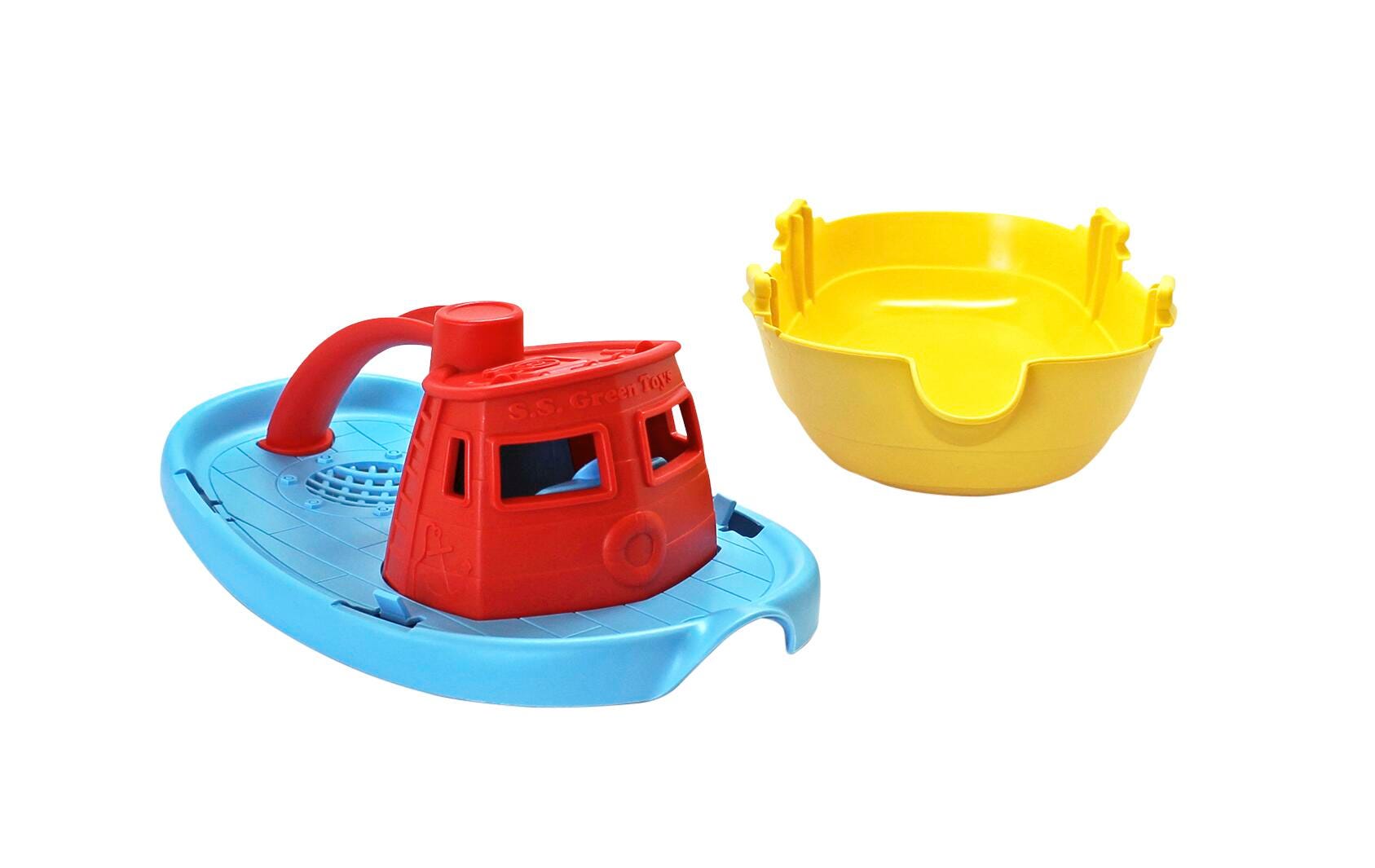 Toddlers can embark on a cruise across the bathtub or navigate the wading pool on a pretend play adventure! This colorful craft floats well and has a wide spout to scoop and pour water. The trusty Green Toys Tugboat is both good for the earth, and most importantly safe for the busy little folks who play on it! This adorable little boat is made without BPAs, PVC, phthalates, or external coatings. Packaged using only recycled and recyclable materials and printed with soy inks.Features