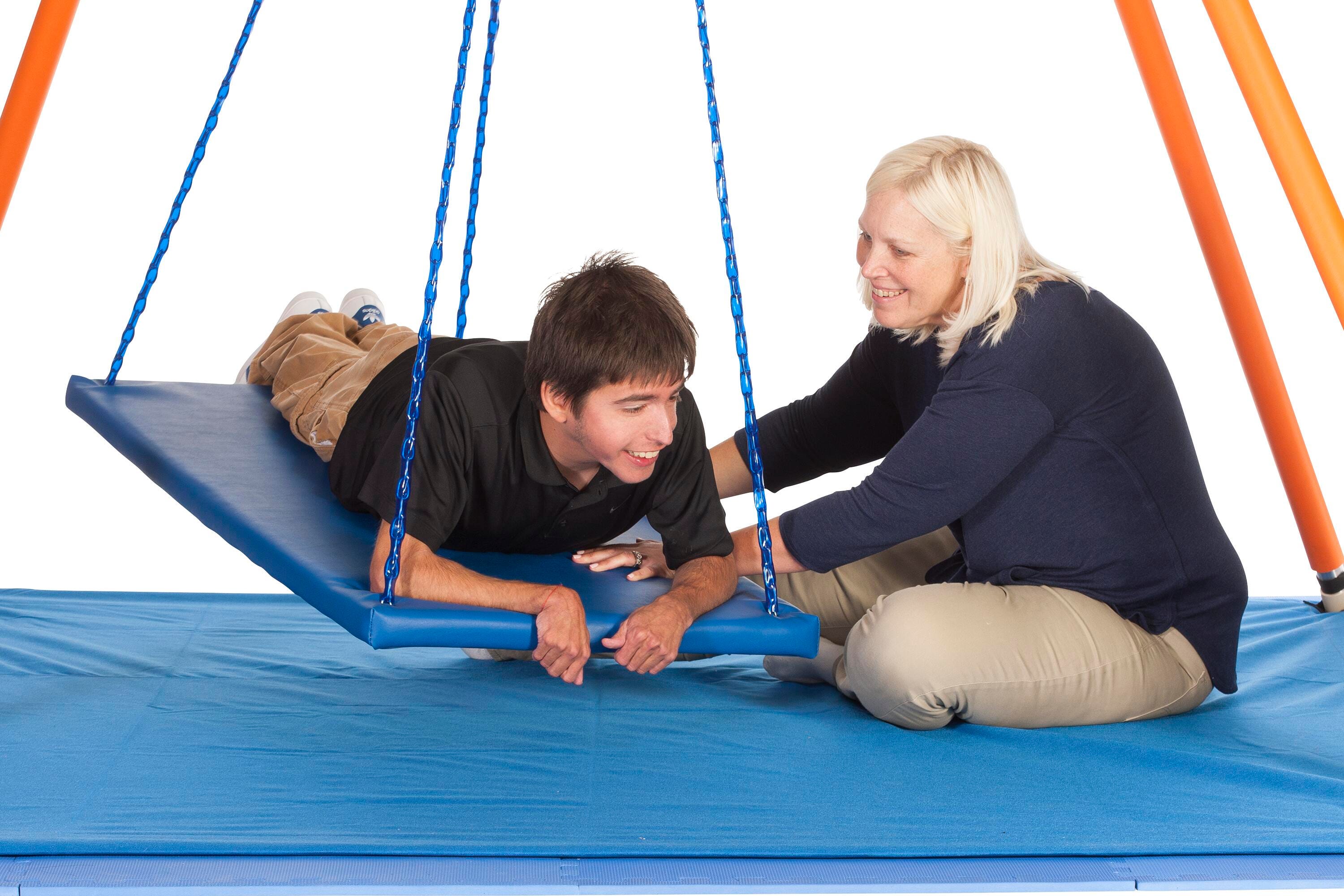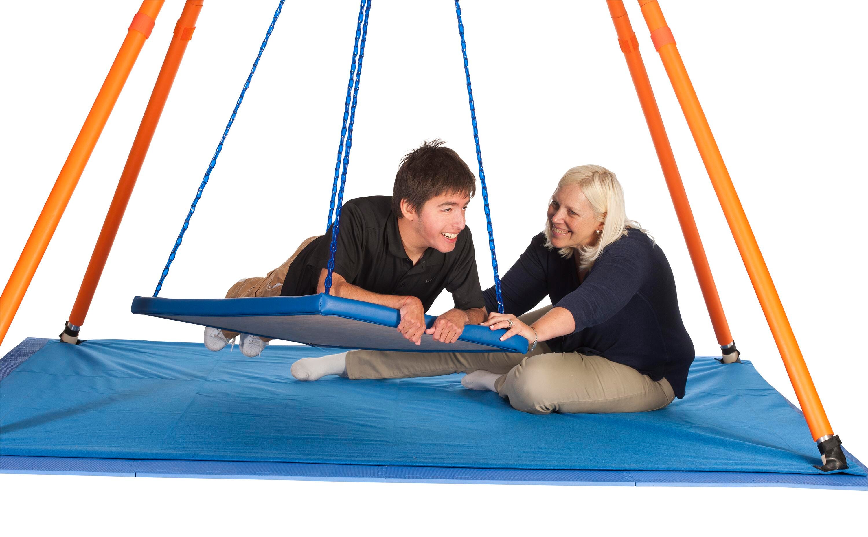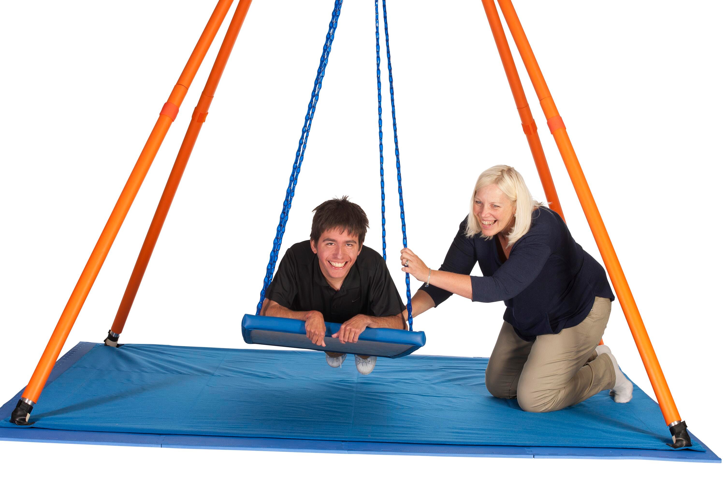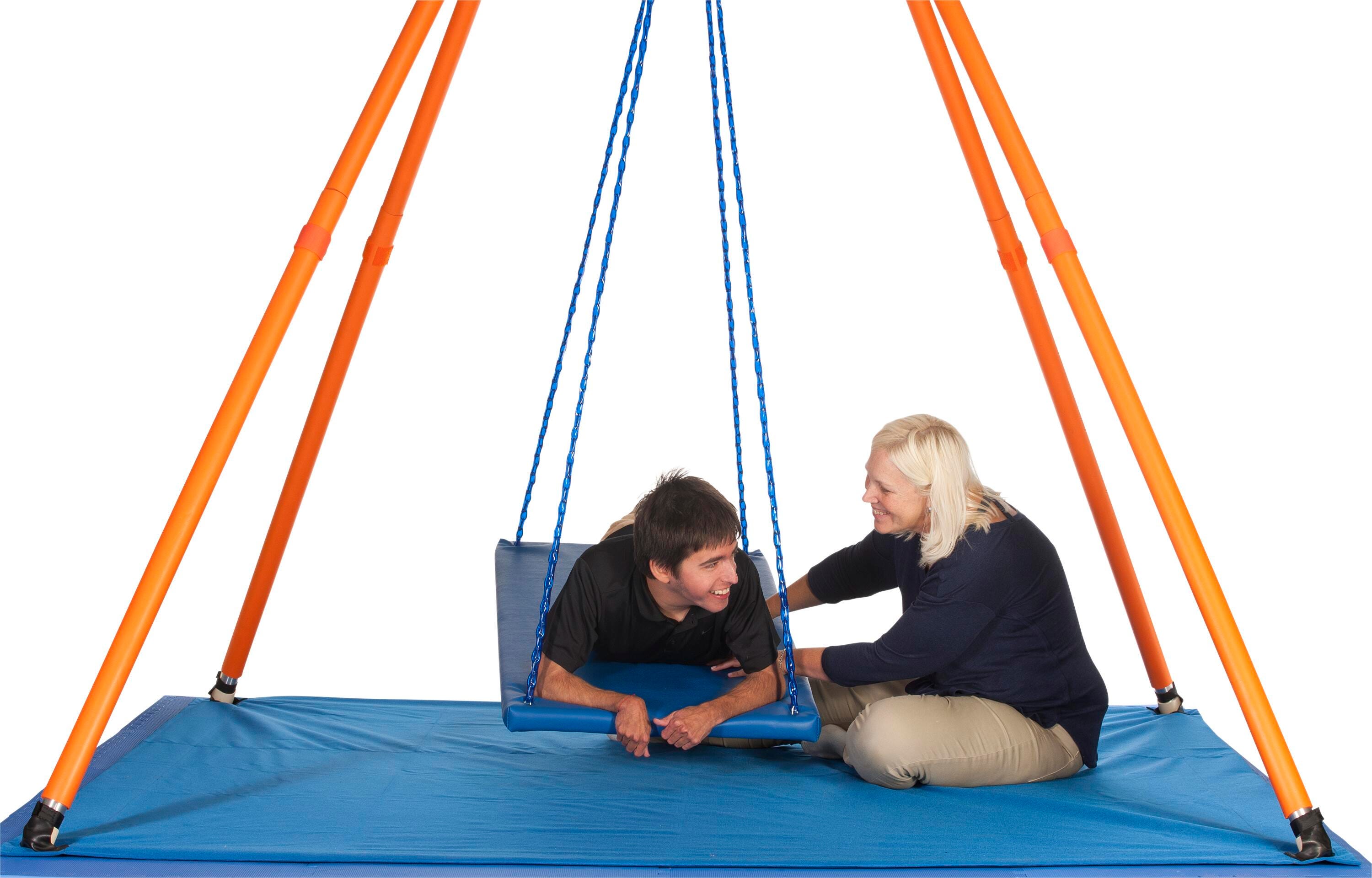 Individuals can sit, stand or lie down on this soft and sturdy padded swing. Made of moisture-resistant vinyl. To be used with the Haley’s Joy On the Go Swing Frame, Size 3. The swing can be used on the dual linear hanging points or with an optional rotational swivel, measures 48 x 24 x 2 inches and weighs 23 pounds. The board has a maximum working load of 300 pounds.