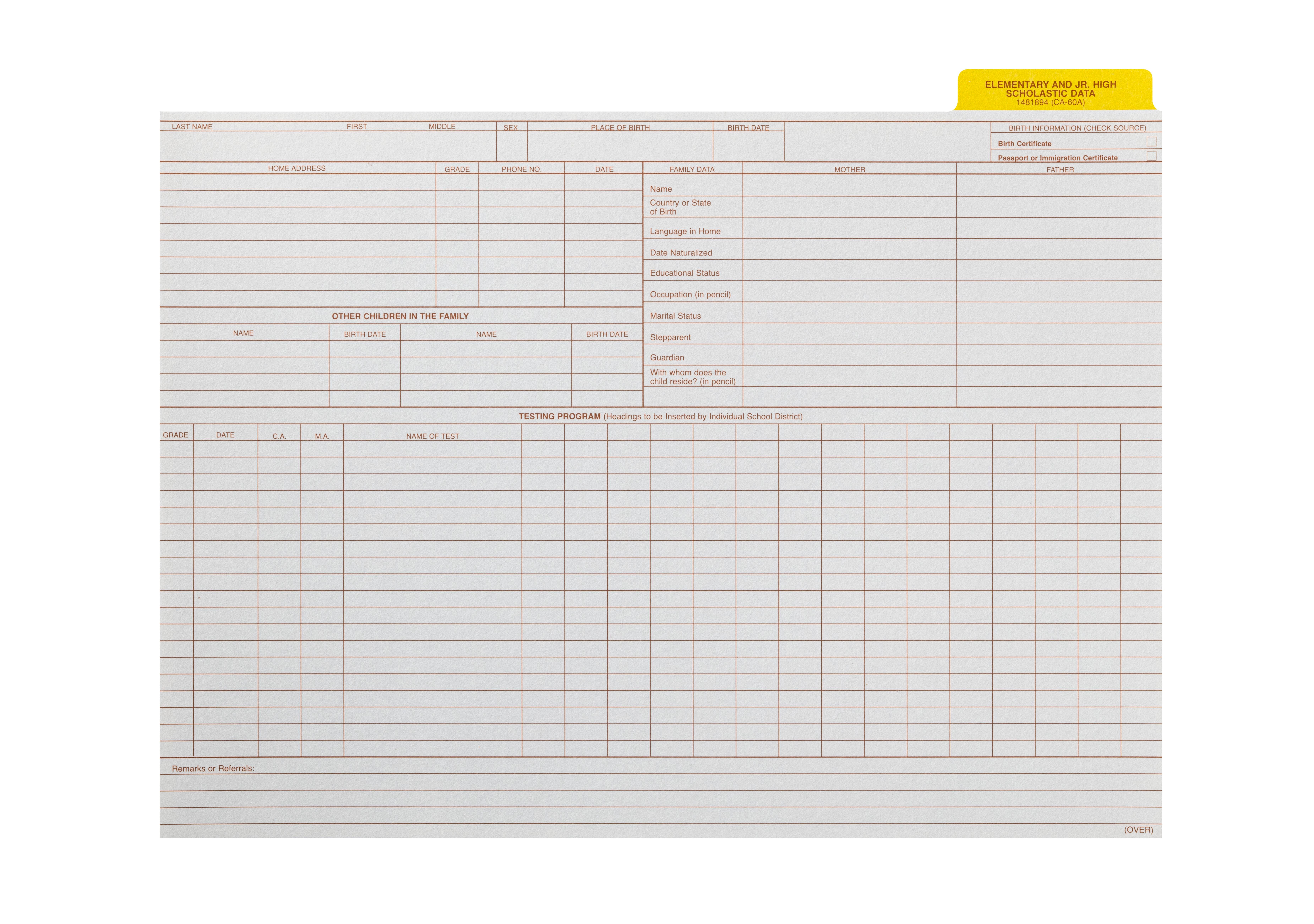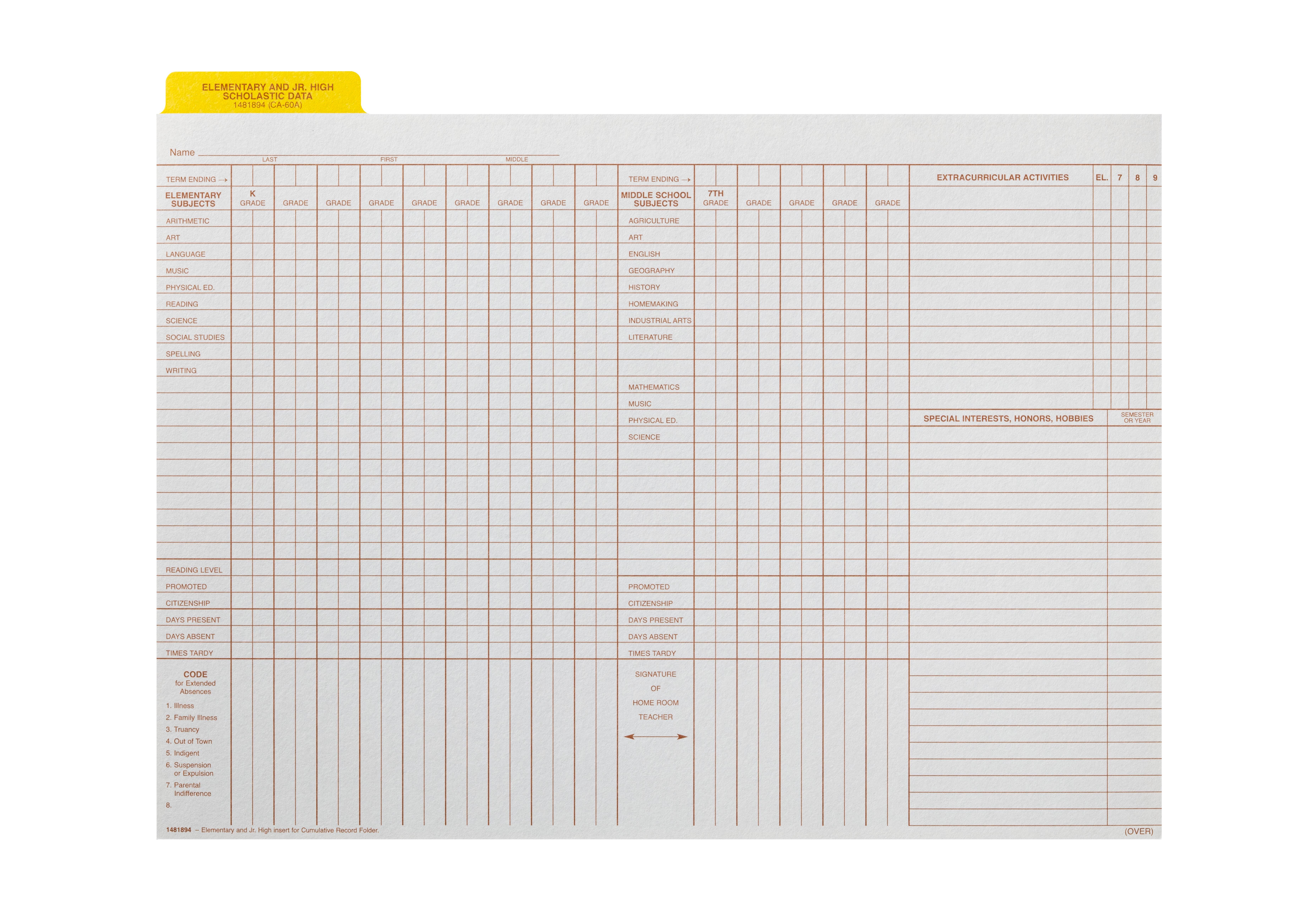 Hammond & Stephens provides an insert sheet for a students cumulative record for student files. Can be used in the school office, summer school, kid organizations, and more. Measures 9 x 11-3/4 inches. Sold as a set of 25 inserts. .Includes: