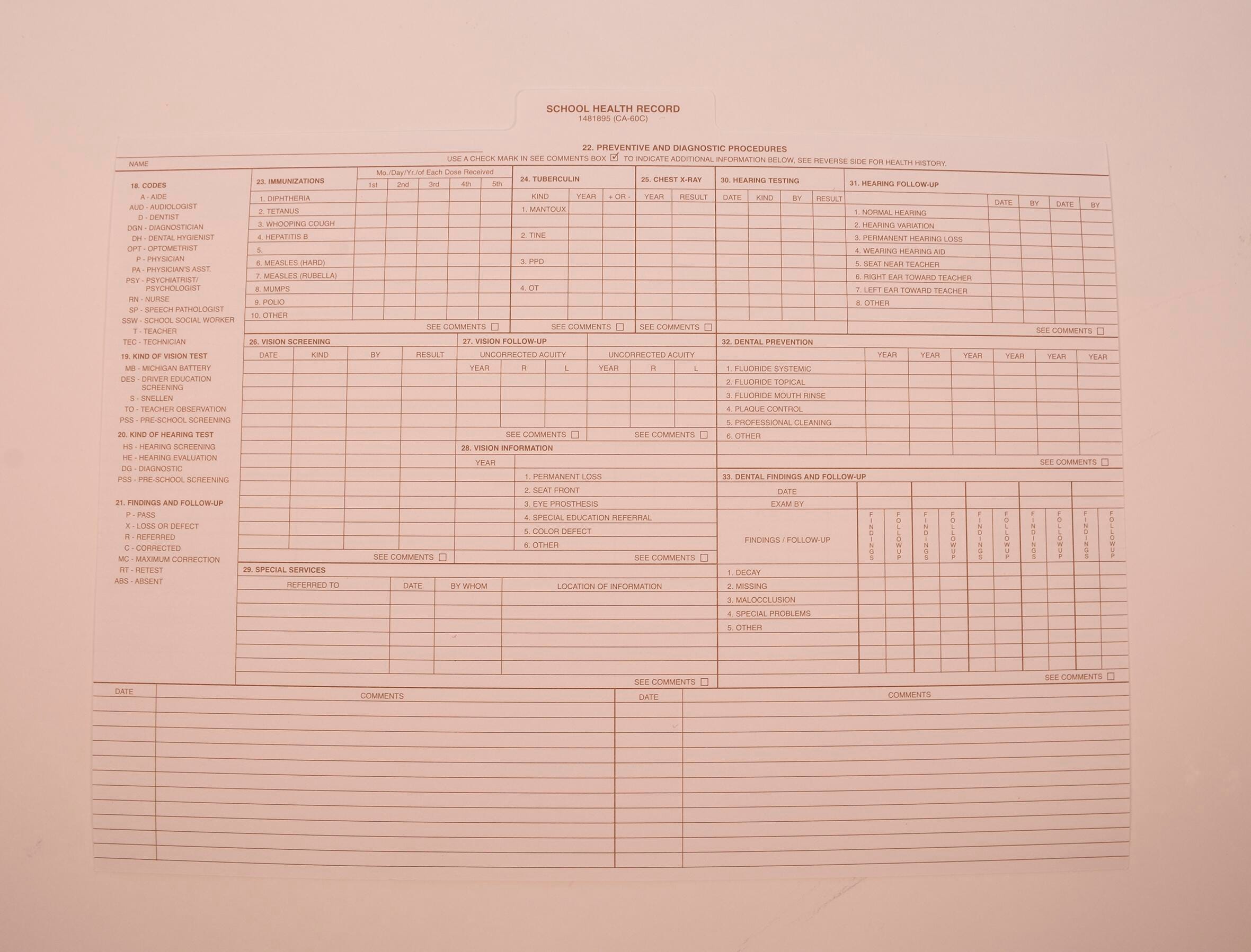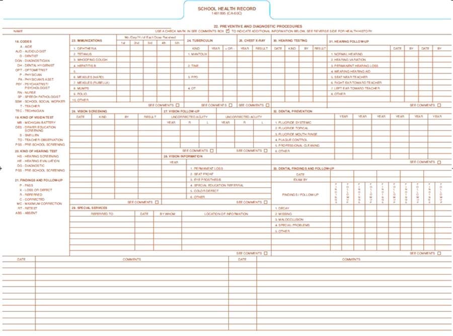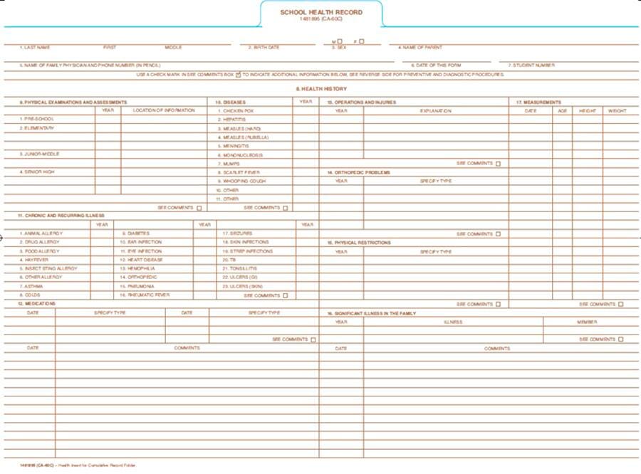 Hammond & Stephens Cumulative Record Folder Health Insert measures 9 x 11-3/4 inches. White tab with brown print. Sold as 25 per pack.
