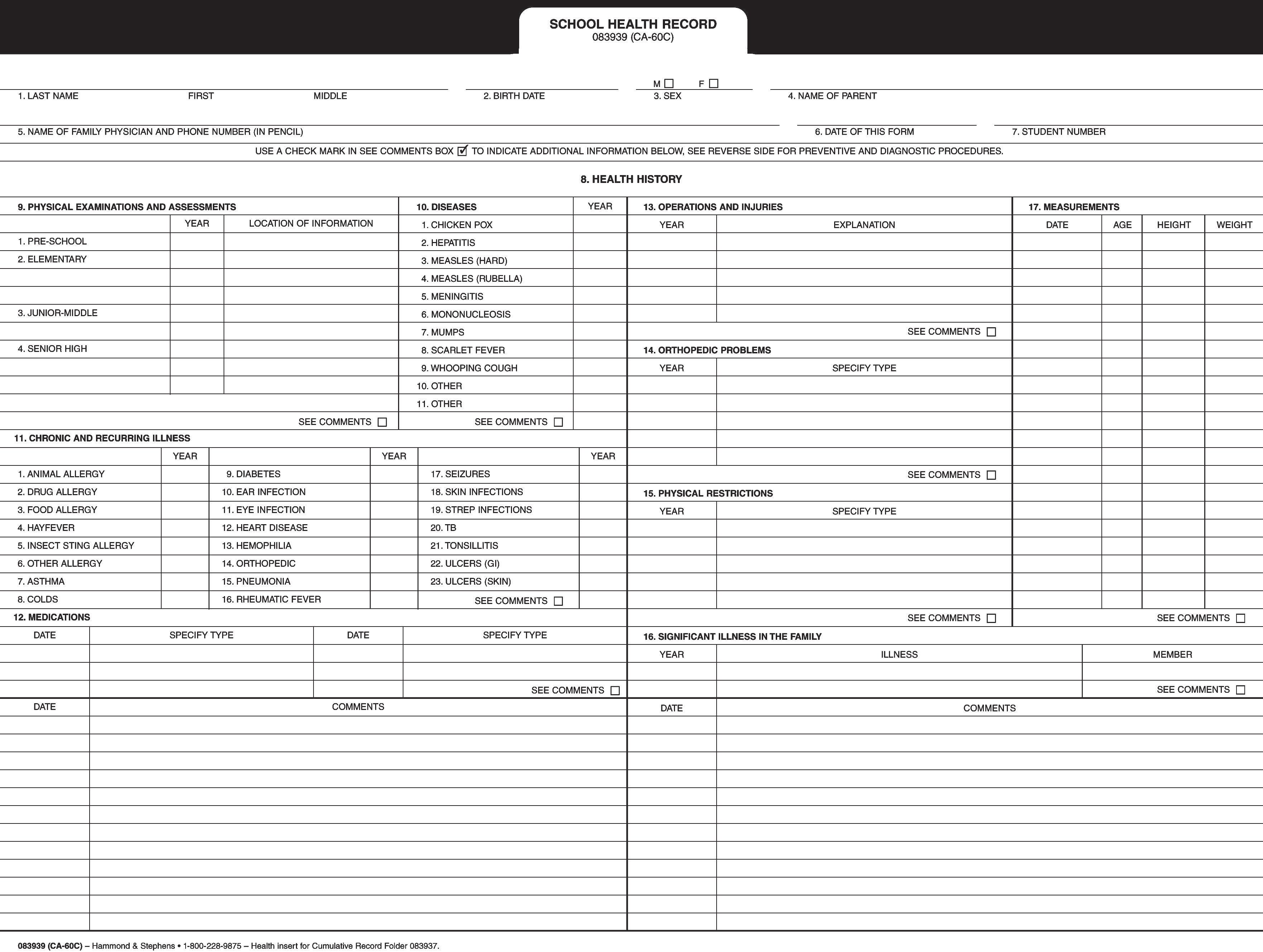 • Hammond & Stephens Health Record Insert for Cumulative Health Insert, 9 x 11-3/4 Inches, White Tab, Pack of 25