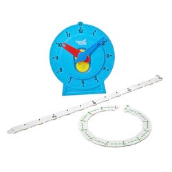 This magnetic NumberLine Clock comes with a clock frame and 2 detachable number line chains—1 for AM and 1 for PM—to show how a clock can be turned into a number line. Magnets make it easy to attach clock to a magnetic whiteboard. Clock also includes 3 different styles of analog clock designs, making it easy to demonstrate telling time on clock styles children might encounter in the real world.Features