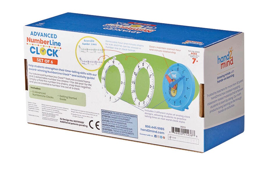 Hand2Mind Advanced Numberline Clock, Set of 6, Grades 2 to 8