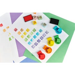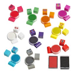 - 12 Ink Pads (10 ink pads with number blocks colors and 2 large ink pads for facial features)