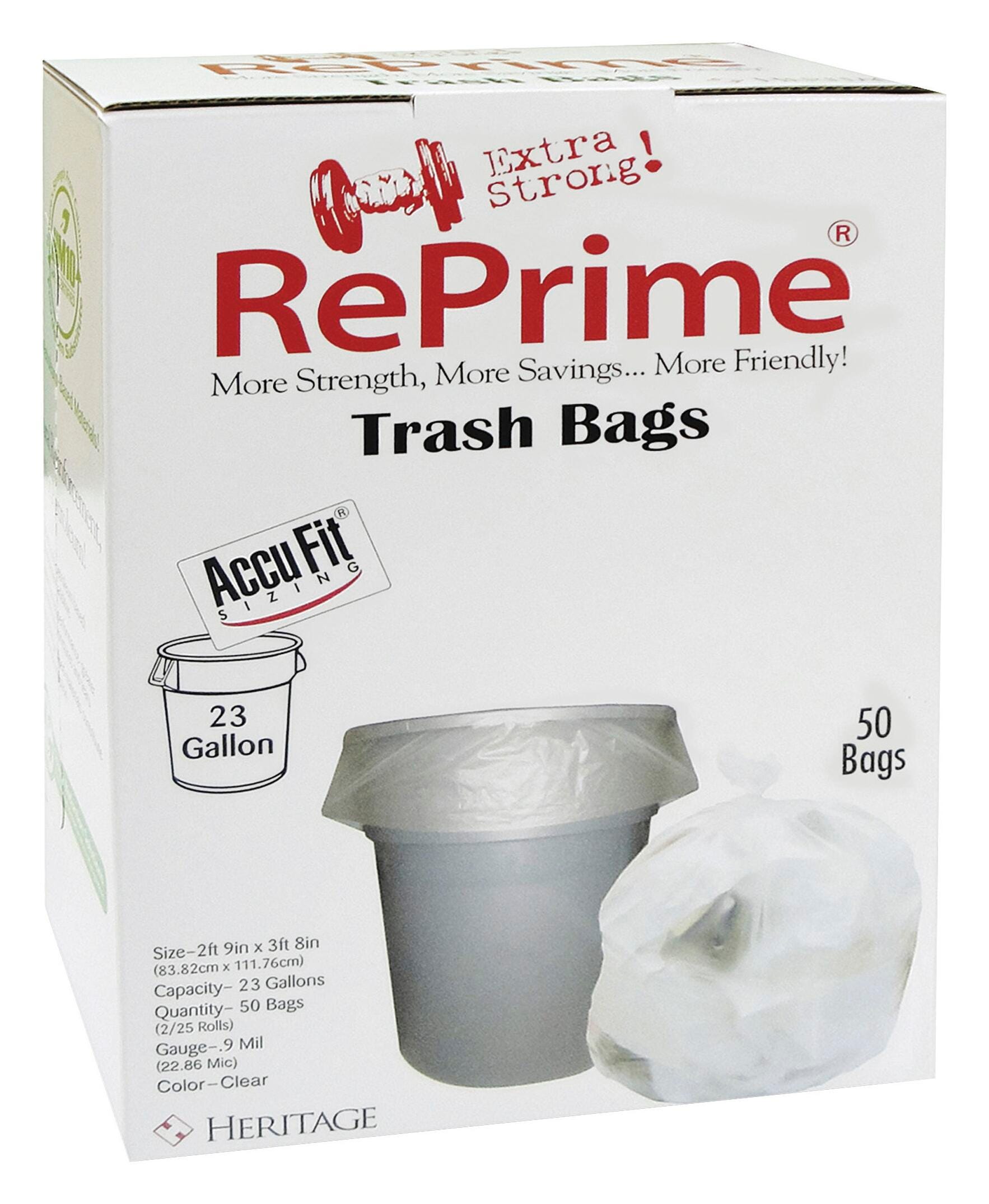 Heritage Accufit 0.9 Mil Clear Accufit Can Liner of 23 gal capacity features a snug fit design that leaves no excess plastic nor does it fall within. Liner measuring 28 in x 45 in is sold as 50 per box.Features