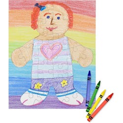 This pack of People Shaped Puzzles from Hygloss offers a versatile canvas for a variety of educational and creative projects. These blank puzzles are made of durable 50-point cardstock, so they can be assembled and taken apart again and again. They can be decorated with markers, crayons, paint, and loads of creativity! Customizing puzzles is a great group activity for camps, classrooms, parties, and more. Children will love to design their own unique puzzles and see them come to life when assembled. Each blank person-shaped puzzle has 26 pieces and measures 8 x 10 inches without the frame. This pack contains 24 puzzles.Features