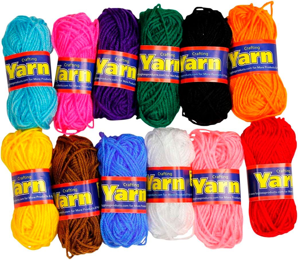 The Hygloss yarn assortment comes in 12 vibrant colors that is made out of 100% acrylic yarn. Each skein contains 24 yards of yarn that is 288 yards total. A great addition to any school or art project. Crafting yard is ideal for crafting, crocheting, knitting string art and more!