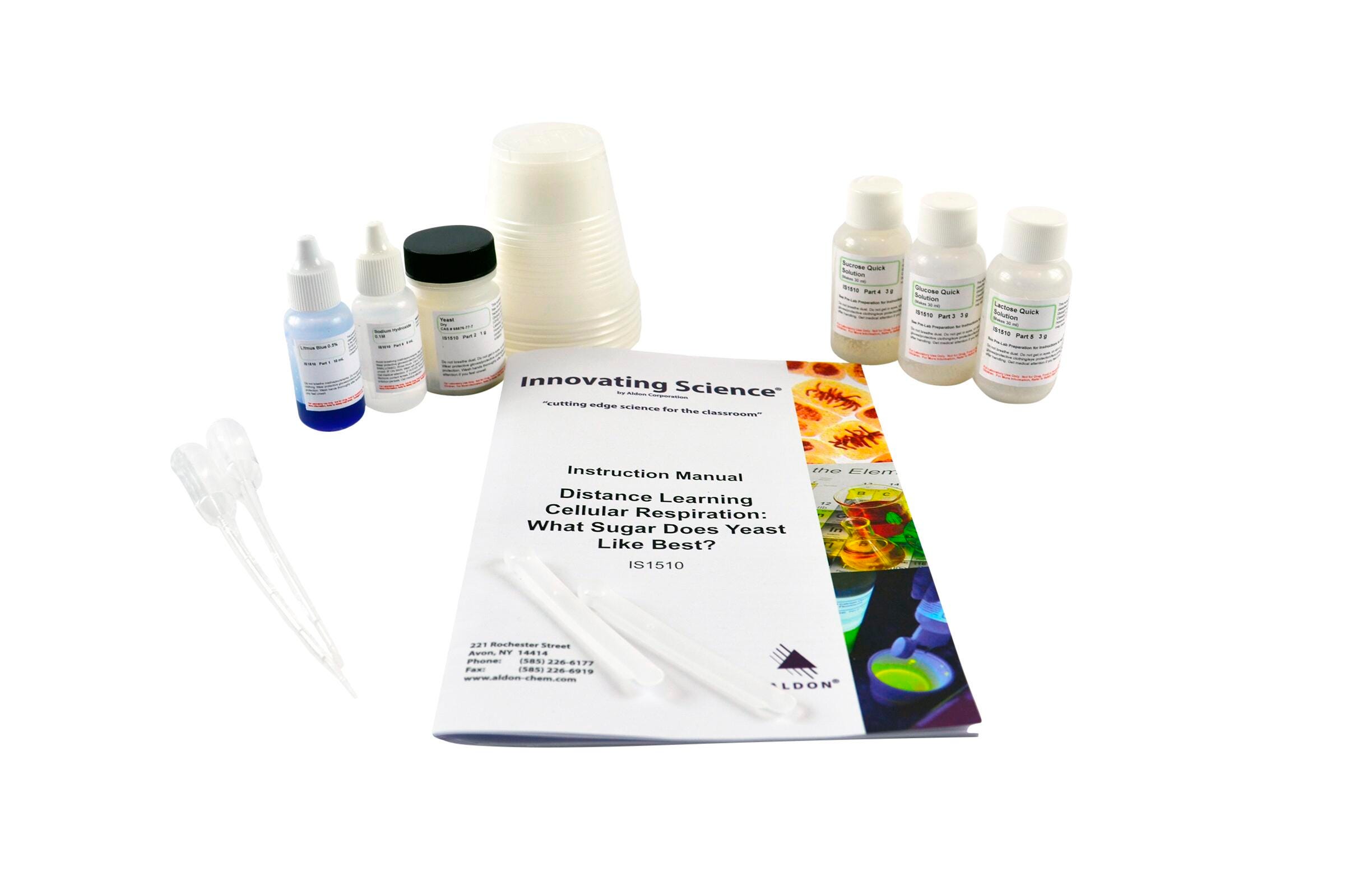 Innovating Science Cellular Respiration lab provides a way for students to learn about cellular respiration by experimenting with living yeast cells and exposing that to glucose, sucrose, and lactose. They will find that combing the two elements together, the yeast will consume the sugars if they are able to metabolize them, leading the yeast cells to engage in aerobic respiration and/or fermentation. A pH indicator is included to indirectly determine how effective the three sugars work as a food source for the yeast. Kit contains an Instruction Manual and enough material for 2 groups of students.Includes