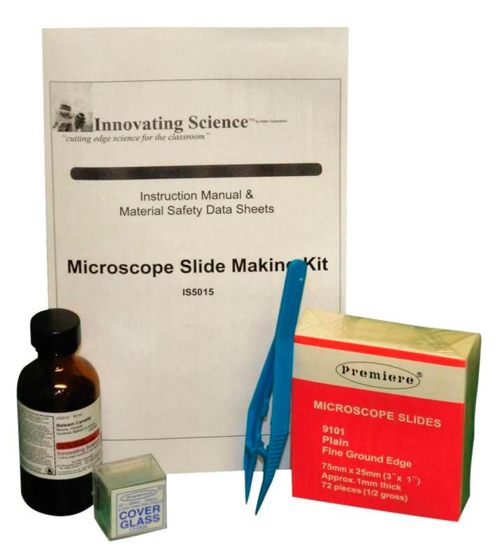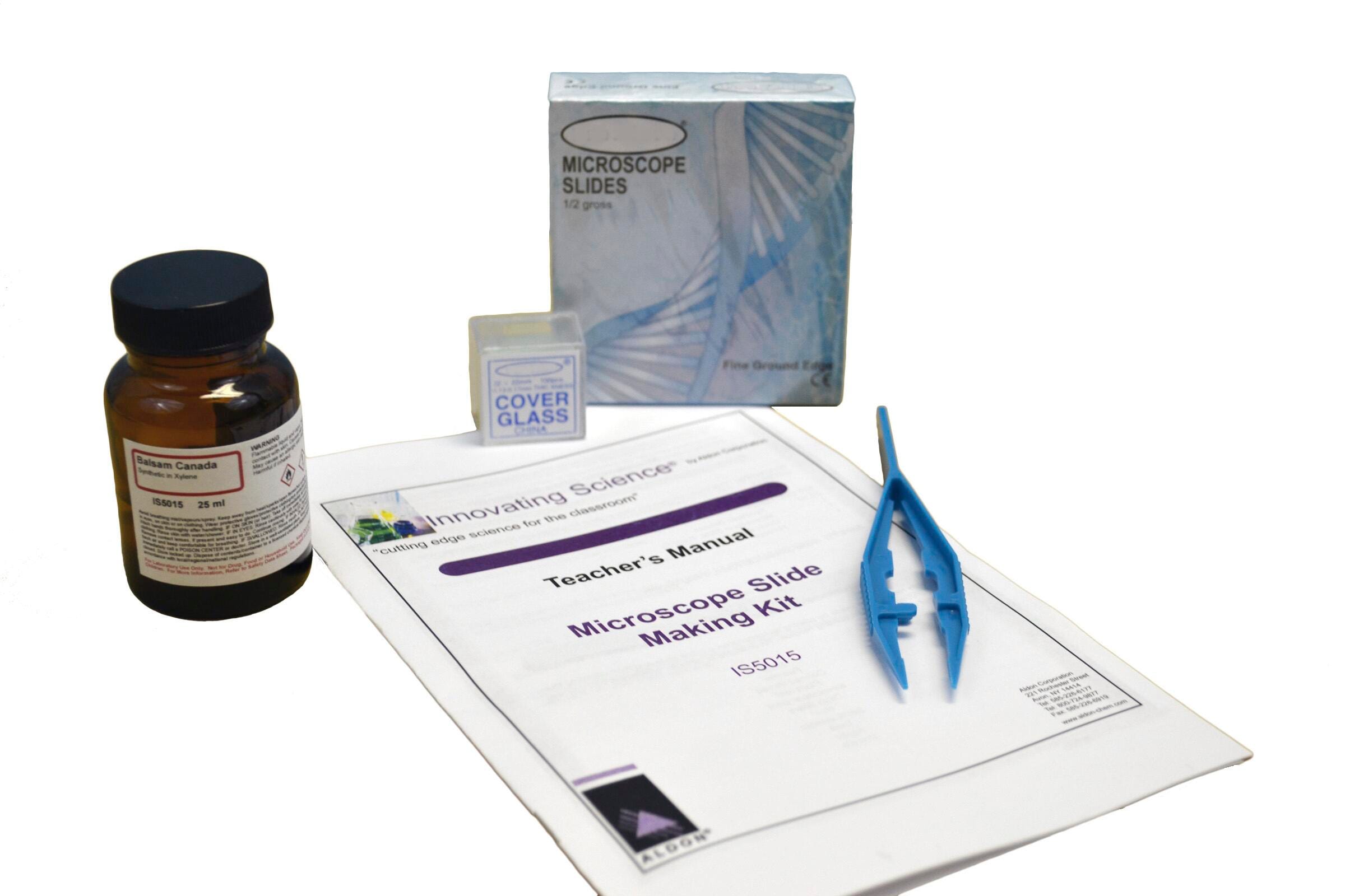 The Microscope Slide Making Kit contains forceps, synthetic balsam, microscope slides, and cover slips. This basic microscope slide-making kit will get you started mounting your own slides.Features